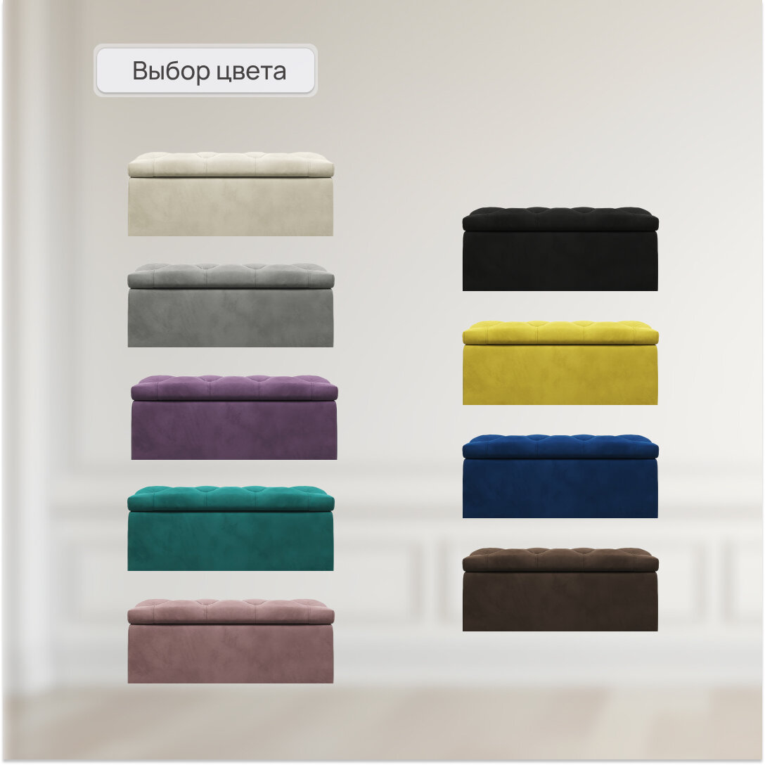 Банкетка пуф, с ящиком для хранения, с механизмом, открывной, "Мечта", фиолетовая, микровелюр, мягкий, квадратный, 100x35x40, в гостинную, в прихожую, в спальню, в коридор, подставка под ноги, к креслу