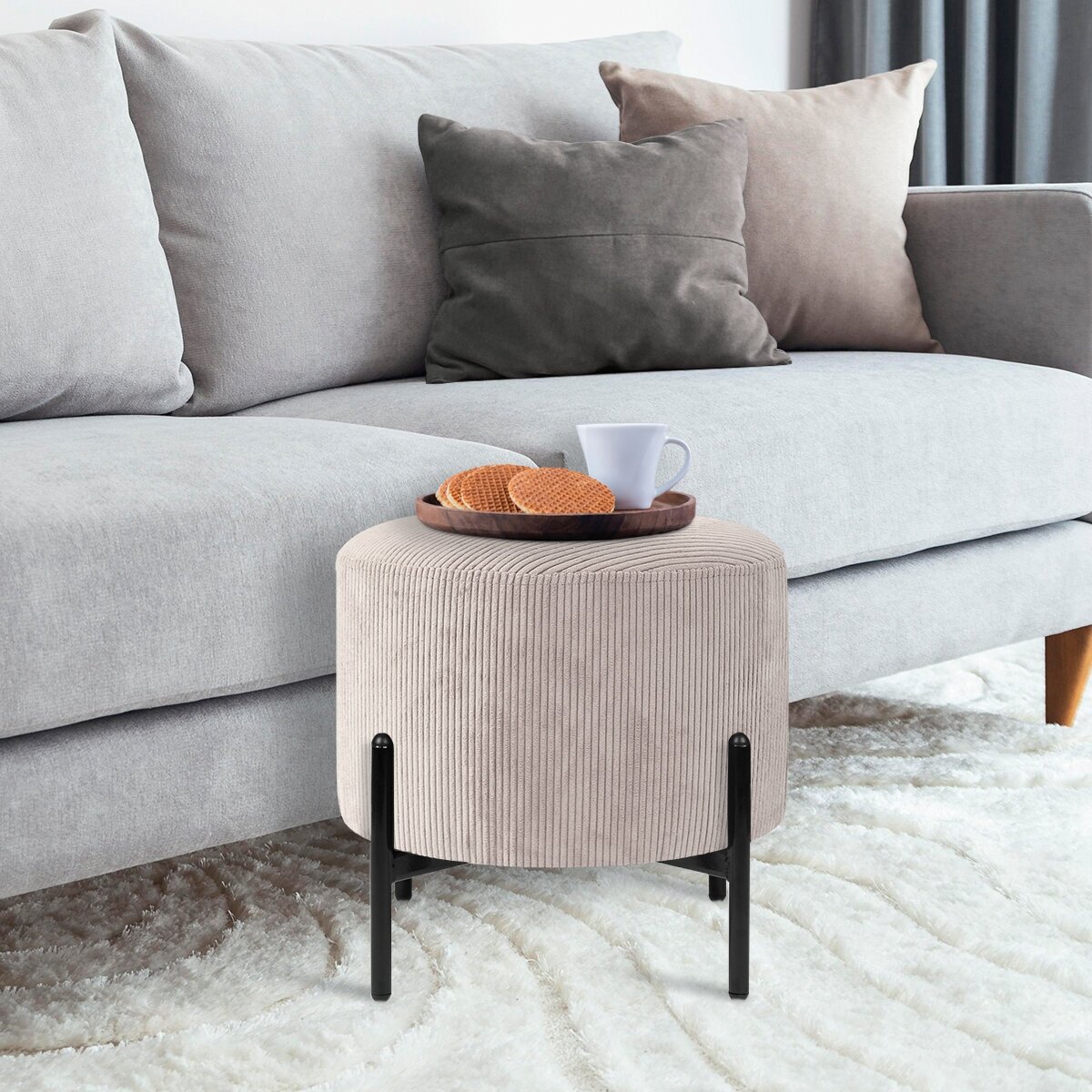 Купить Круглый Пуф Пуфик из велюра для спальни, гостиной, прихожей, на кухню или балкон Серо-бежевый