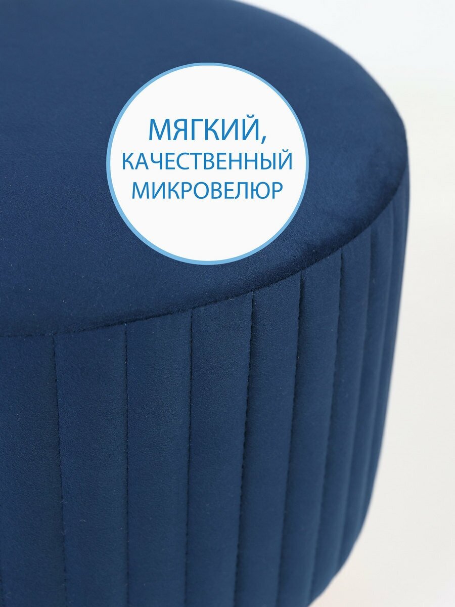 Пуф круглый Элика / пуфик в прихожую, в спальню / велюр / темно-синий