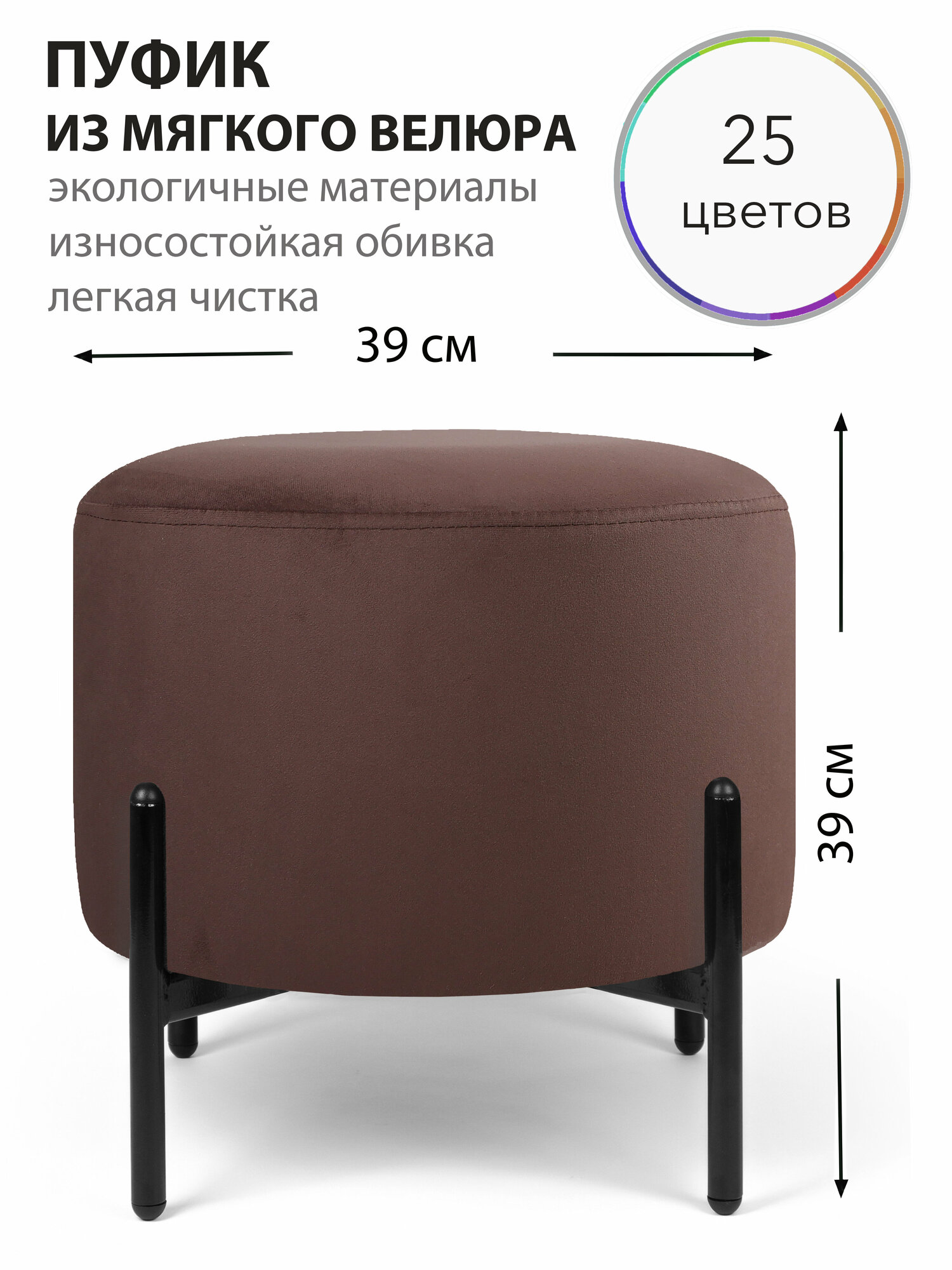 Купить Круглый Пуф Пуфик из велюра для спальни, гостиной, прихожей, на кухню или балкон Темно-коричневый