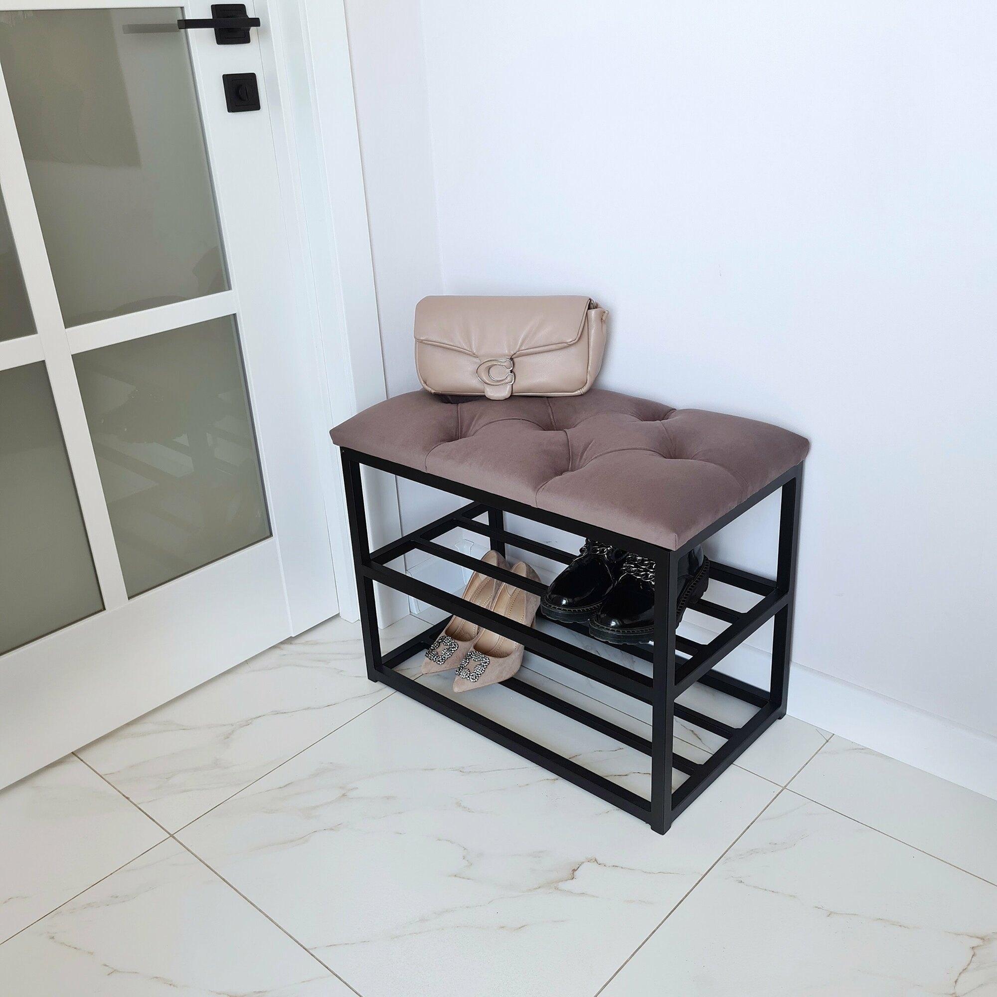 Обувница велюр коричневый этажерка пуф банкетка полка для хранения обуви в прихожую с мягким сиденьем лофт металлическая интересное: