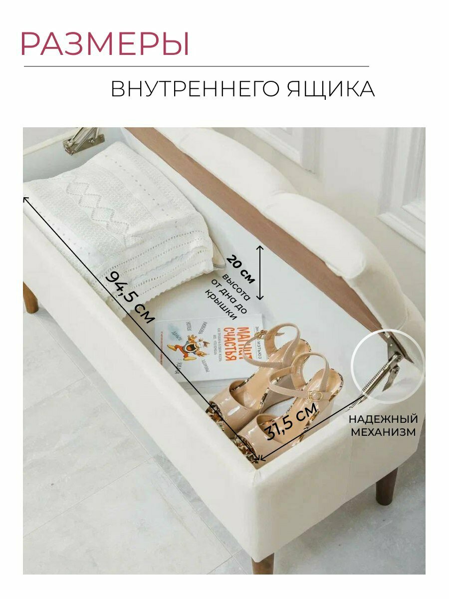 Обувница для прихожей с сиденьем закрытая / Пуф мягкий из экокожи / Банкетка в прихожую Бежевый 59.5*38.5*38