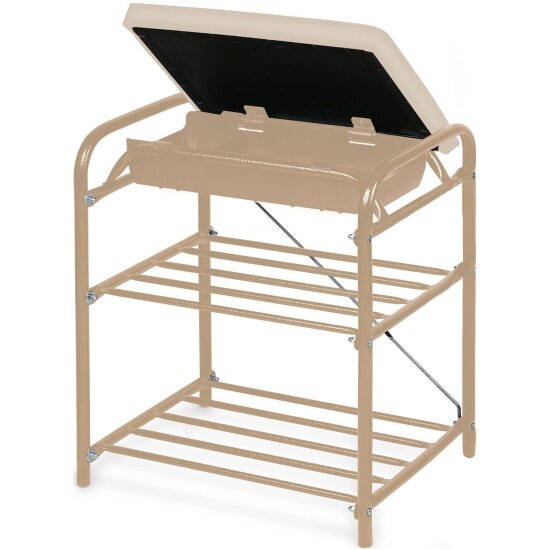 Обувница для прихожей с сиденьем закрытая / Пуф мягкий из экокожи / Банкетка в прихожую Бежевый 59.5*38.5*38