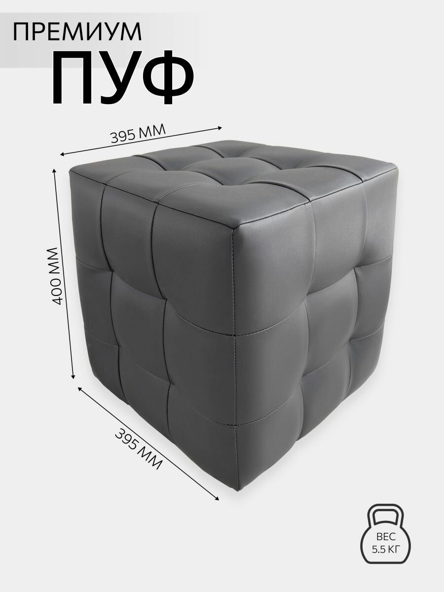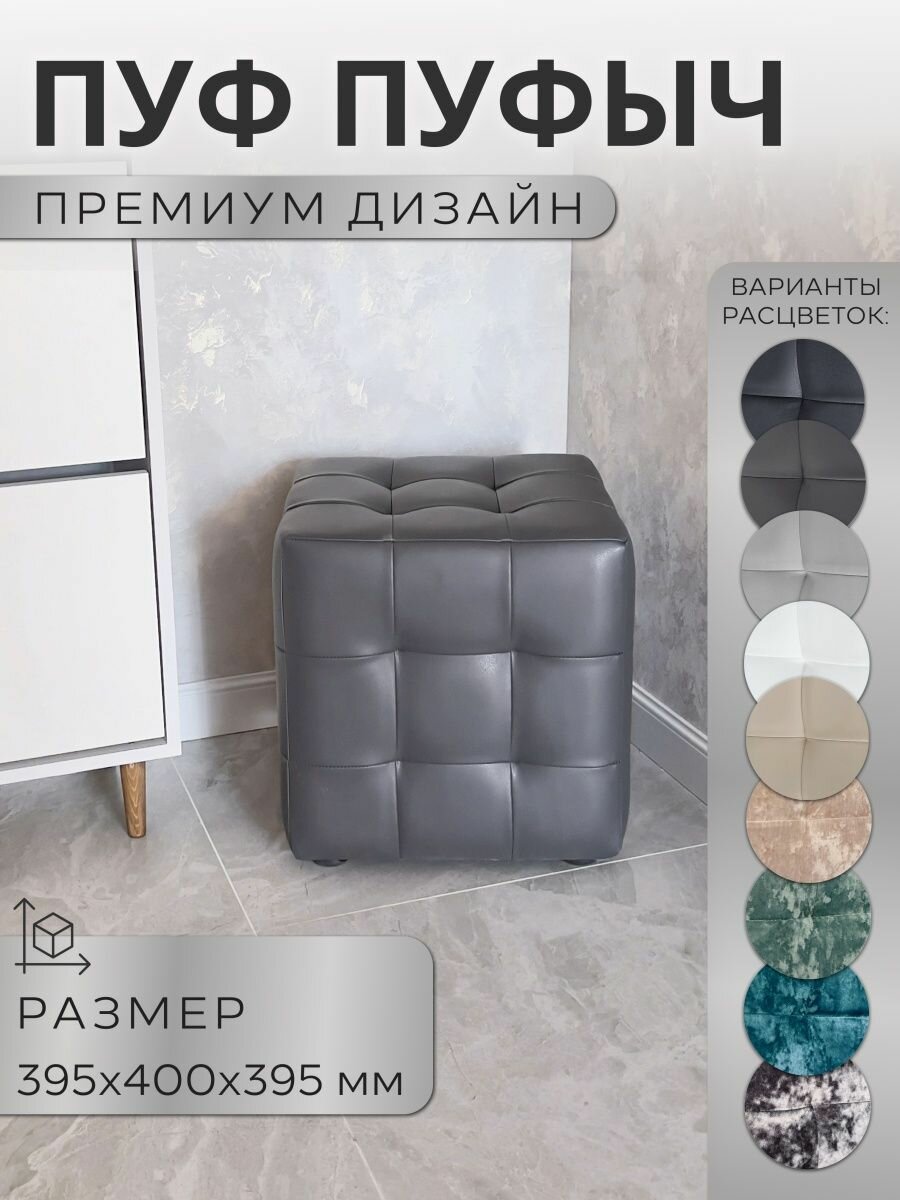 Пуф Пуфыч Vремя shop 40*40*40 кожзам темно-серый, серый
