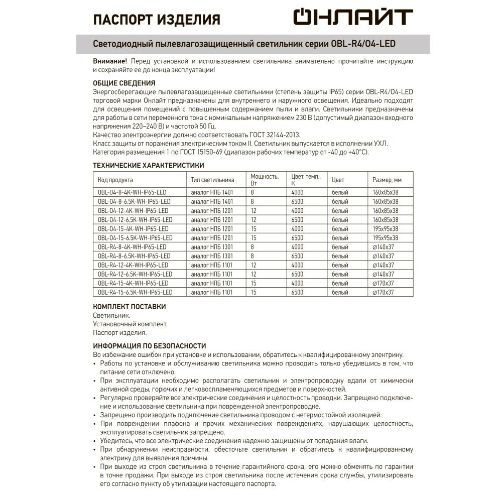 Светильник пылевлагозащищенный онлайт 90 120 OBL-R4, 12 Вт, дневного света 4000К, IP65, белый интересное: