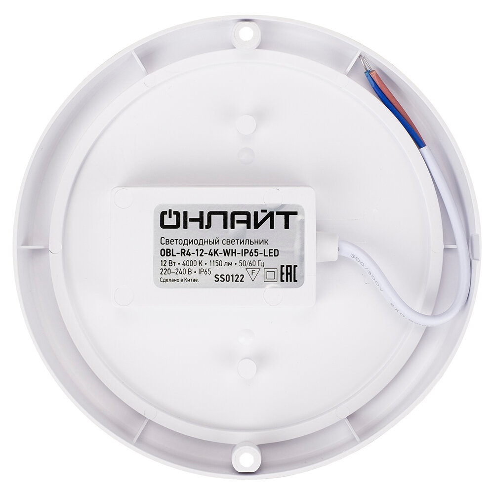 Светильник пылевлагозащищенный онлайт 90 121 OBL-R4, 12 Вт, холодного света 6500К, IP65, белый
