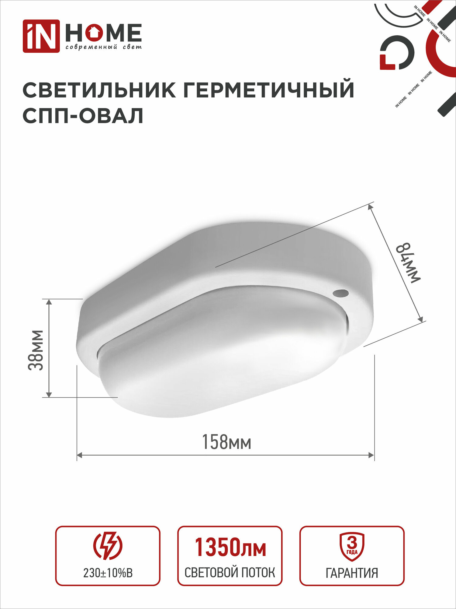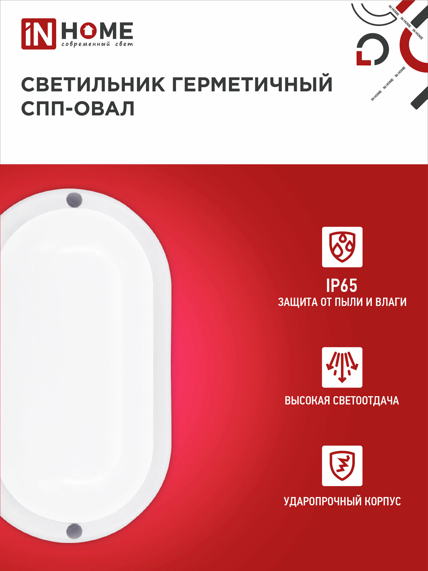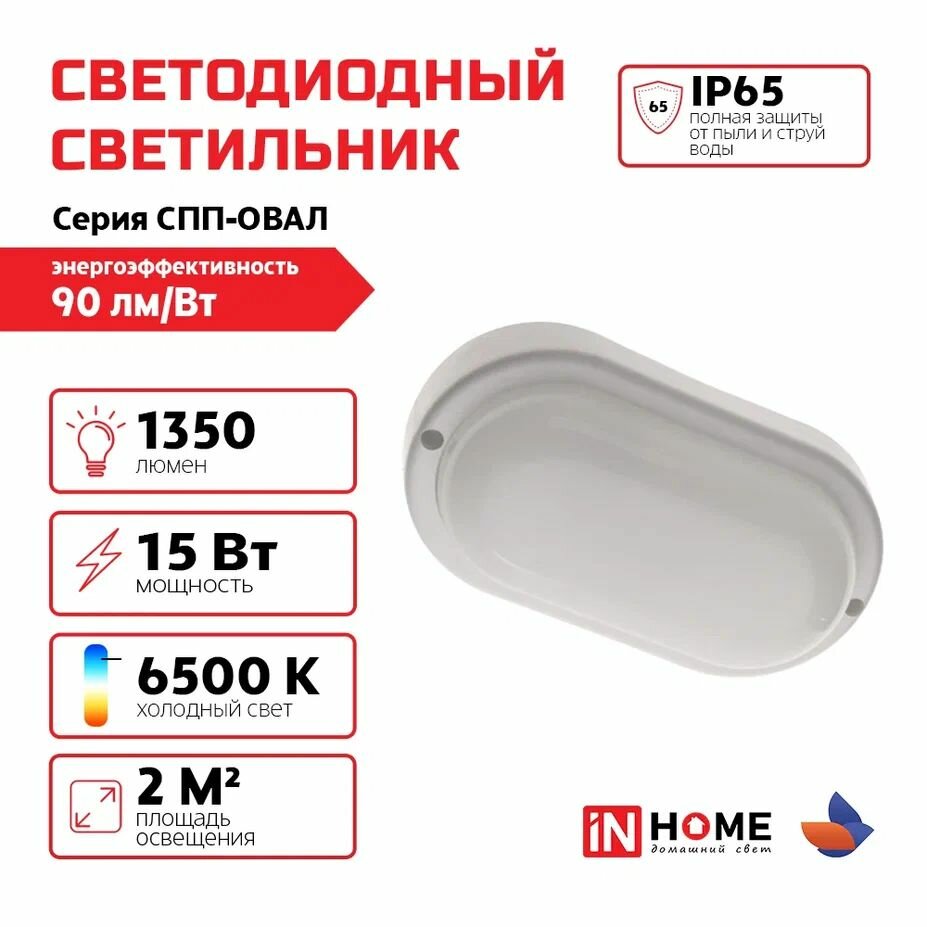 Светильник светодиодный герметичный СПП 1565-ОВАЛ 15Вт 6500К 1350лм IP65 160х88мм IN HOME 4690612044958 интересное: