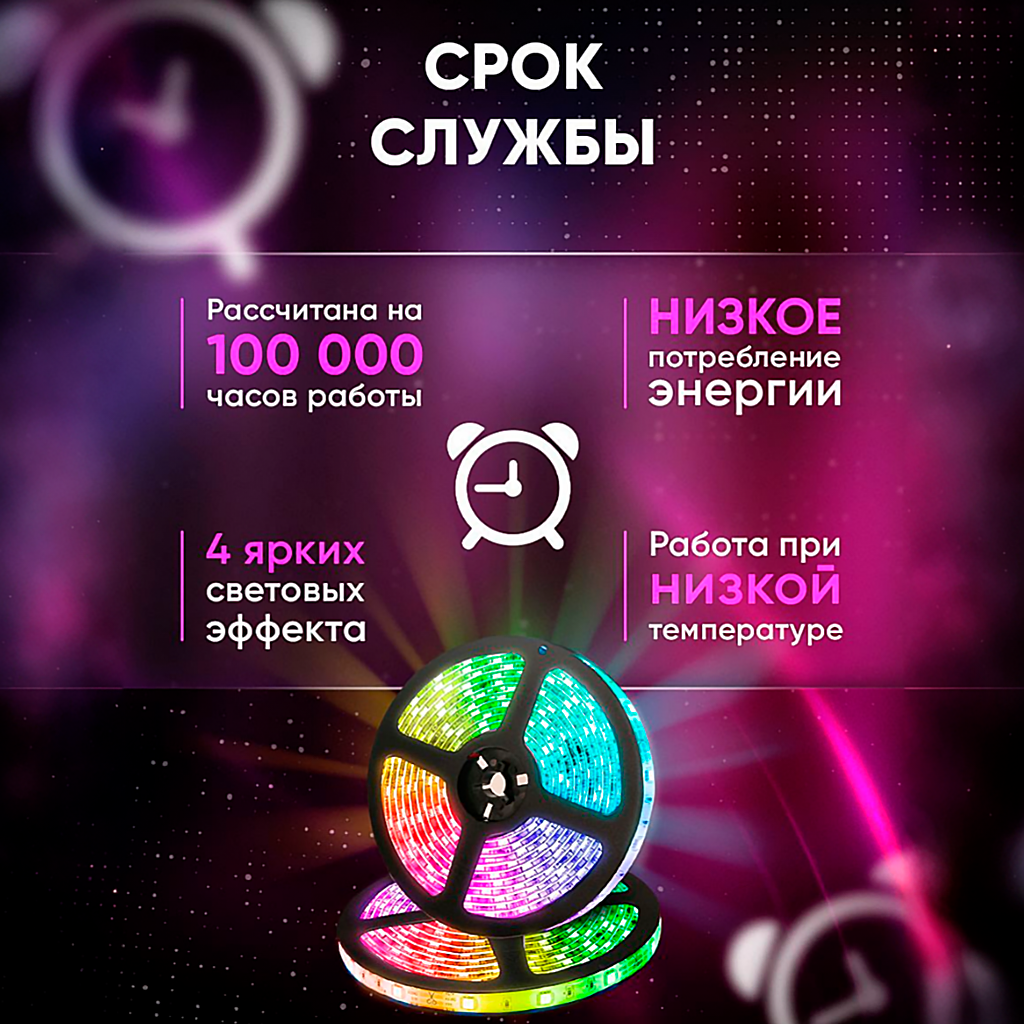 | Особенности | RGB-контроллер в комплекте / герметизация / режим ночника / самоклеящаяся основа / термостойкая |