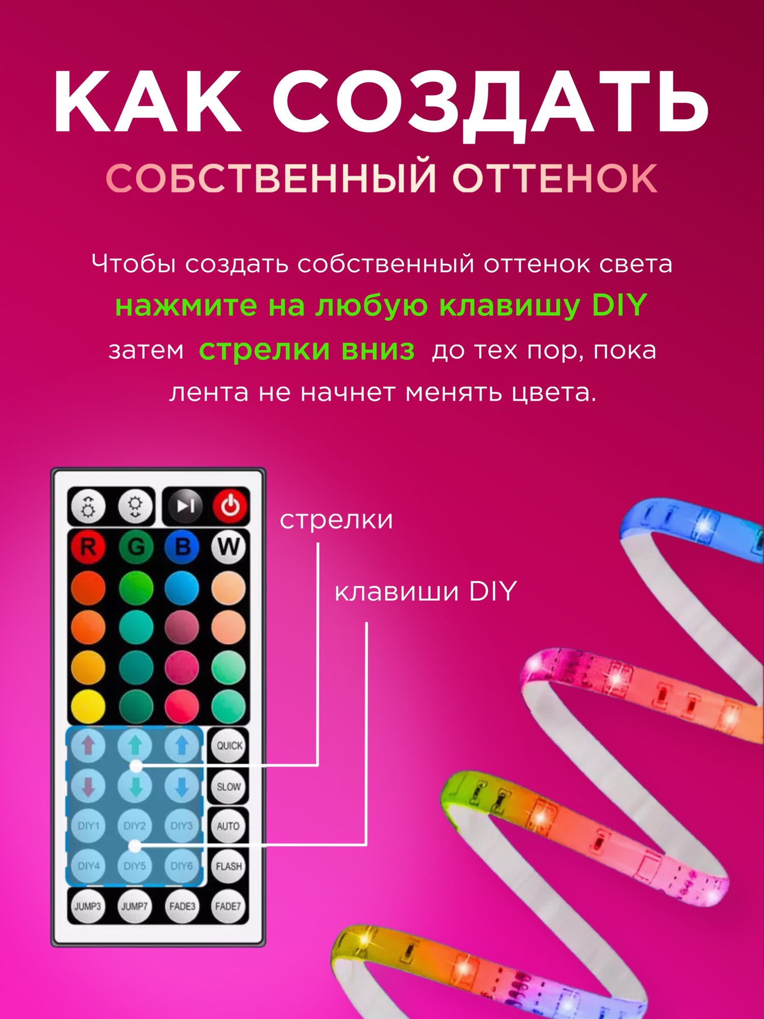 | Комплектация | светодиодная лента; контроллер; блок питания; Пульт; инструкция |