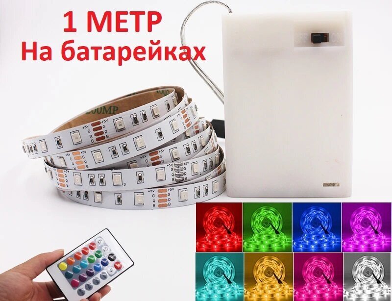 Лента светодиодная разноцветная на батарейках, c пультом, 1 метр, RGB/Rezlazer интересное: