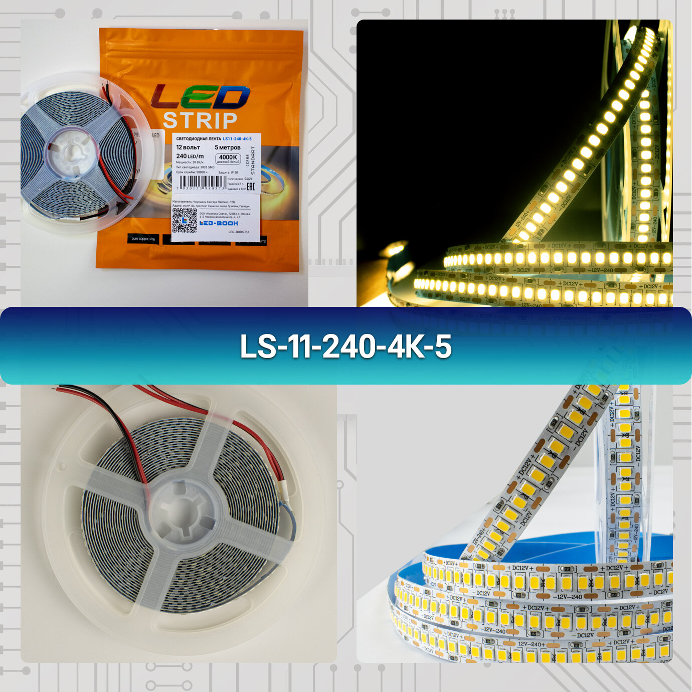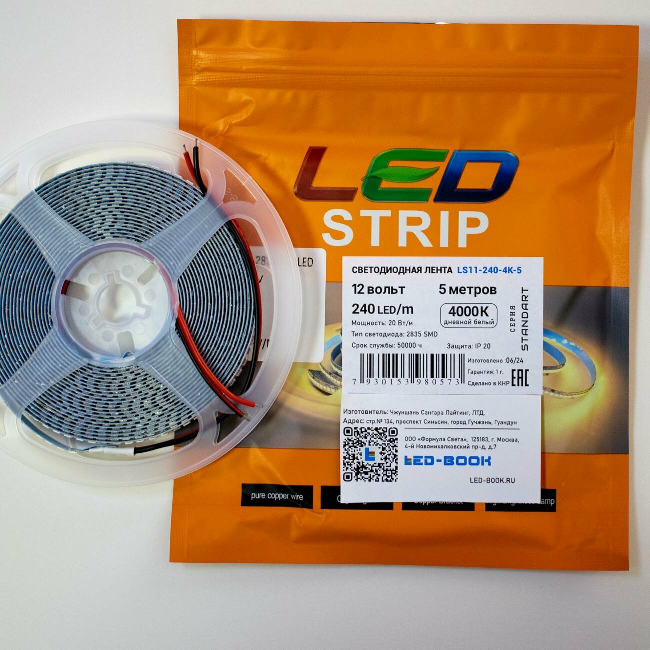 Светодиодная лента Led-Book 12В, 20 ВТ/м, SMD 2835 240 шт/м, IP20 дневной белый 4000К, 5м интересное: