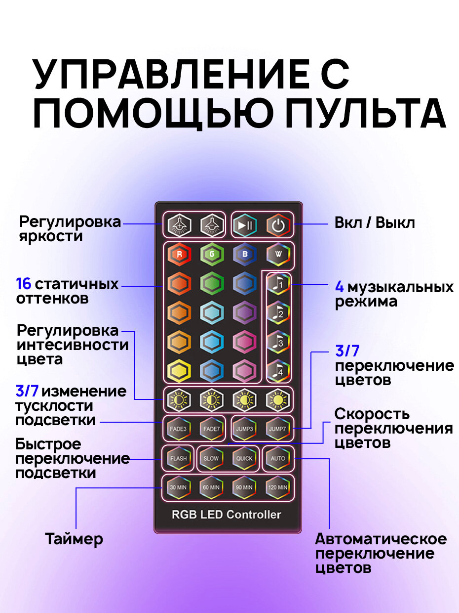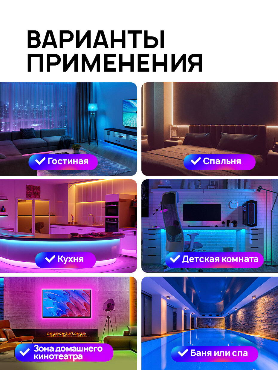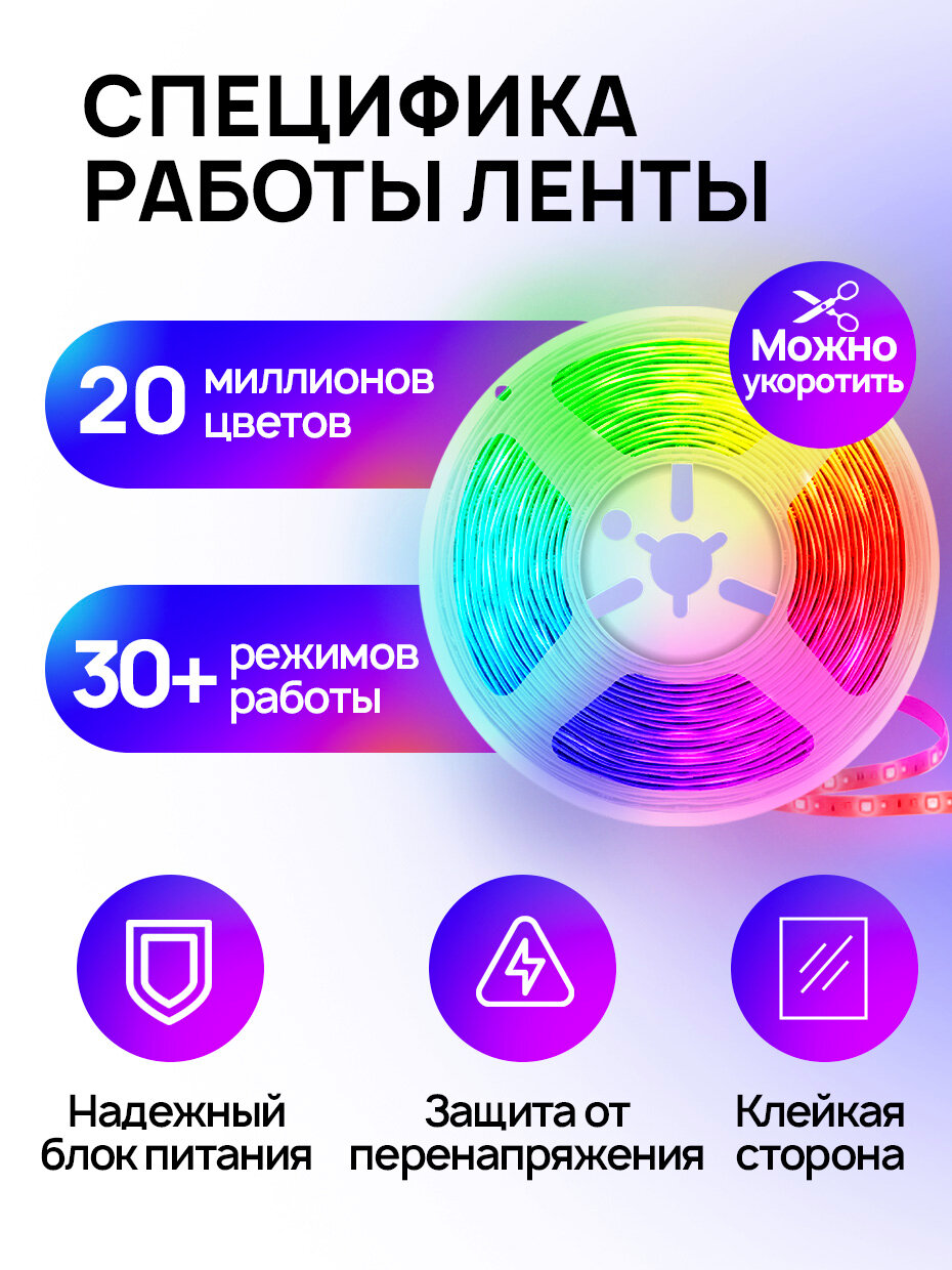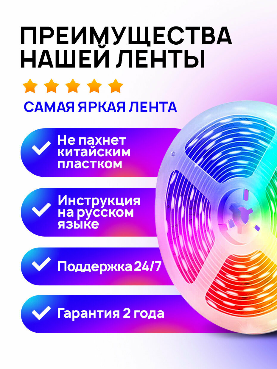 | Комплектация | лента, блок питания, пульт управления, коробка |