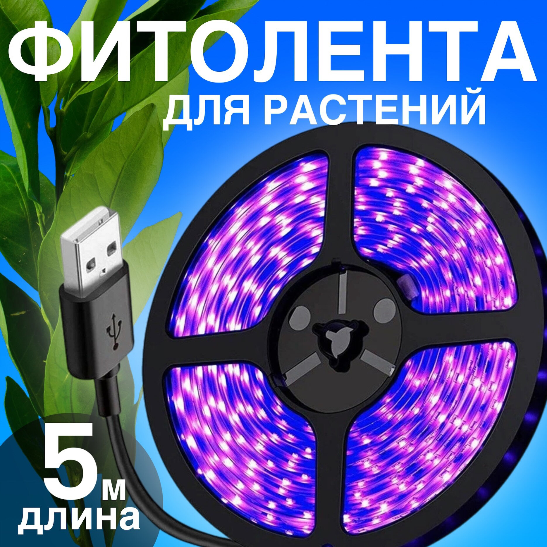 Фитолента светодиодная лента GSMIN B77 фитолампа для роста растений рассады USB (5 В, 300LED) (5 м) интересное: