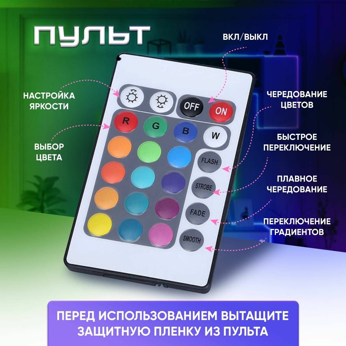 | Комплектация | блок питания; rgb лента 15 метров; контроллер; пульт управления; гарантийный талон |