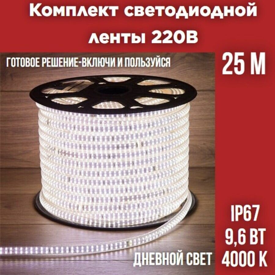 Купить Комплект уличной светодиодной ленты 2835-120 9,6Вт 4000K IP67 220В 25м