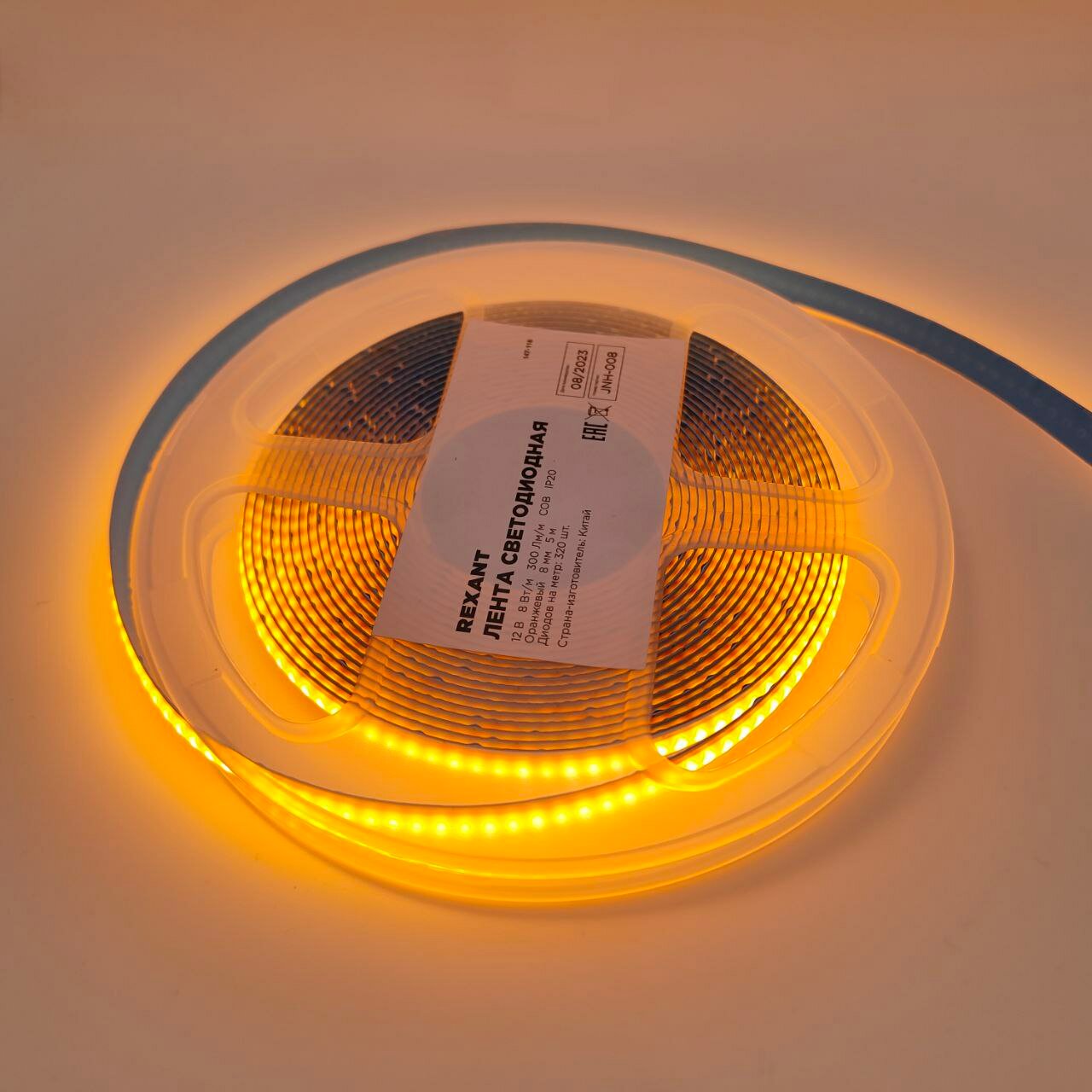 Лента светодиодная 12В, COB 8Вт/м, 320 LED/м, оранжевый, 8мм, 5м, IP20 REXANT интересное: