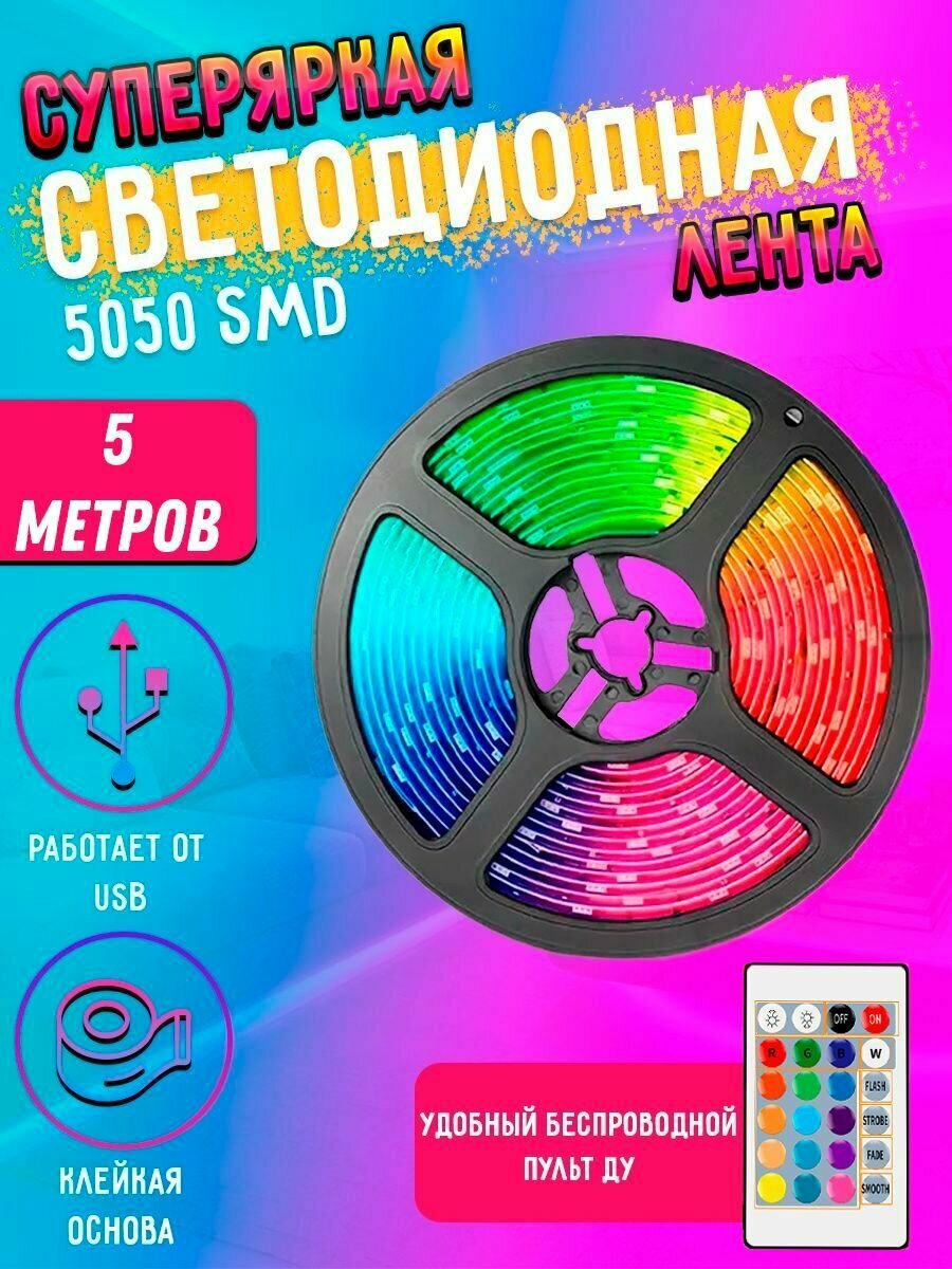 Купить Светодиодная многоцветная RGB LED лента с пультом 5м 5050 SMD с USB, света диодная РГБ ЛЕД подсветка