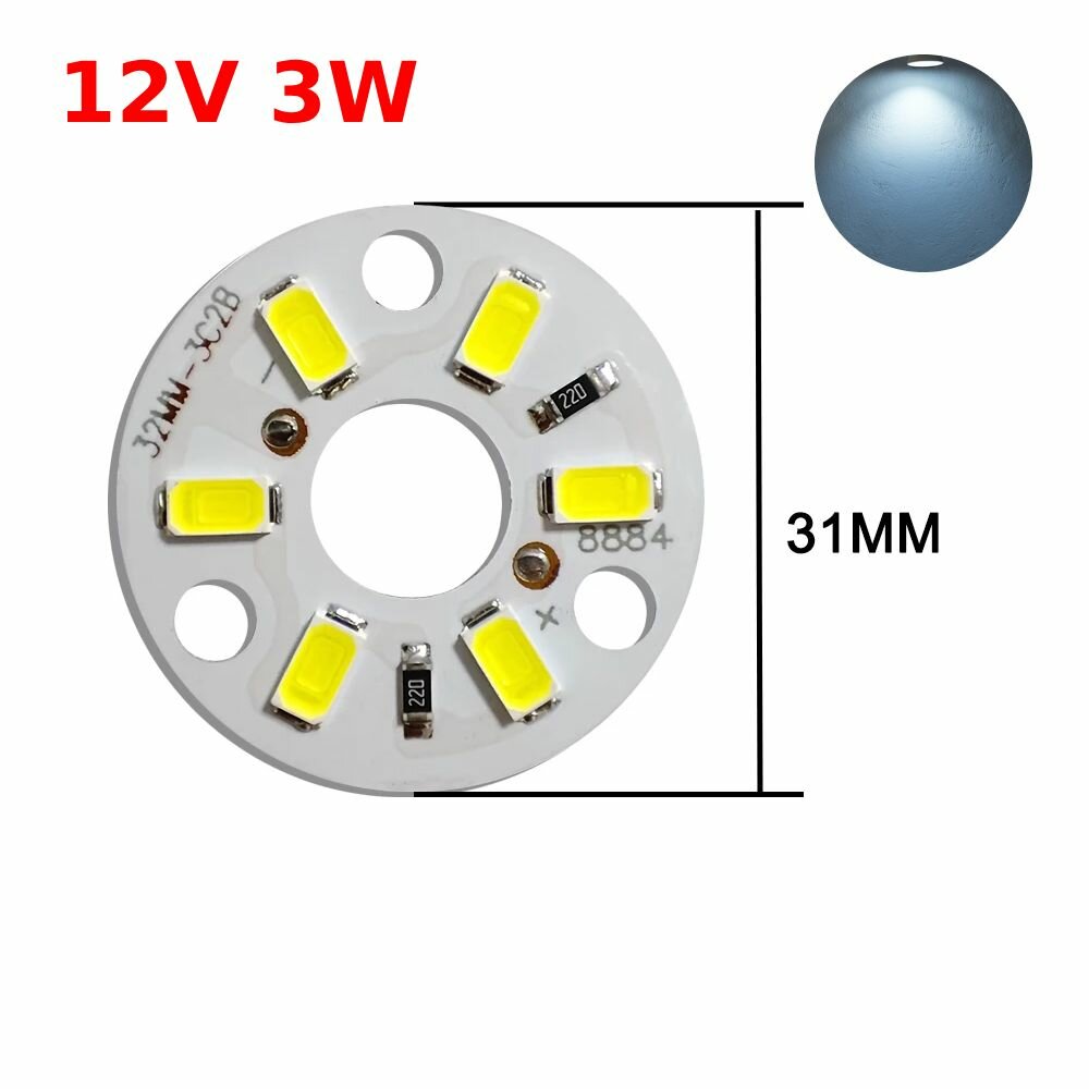 Купить Алюминиевая круглая светодиодная плата (модуль) D31 12V 3W 6led smd 5730, белый холодный свет 6500K