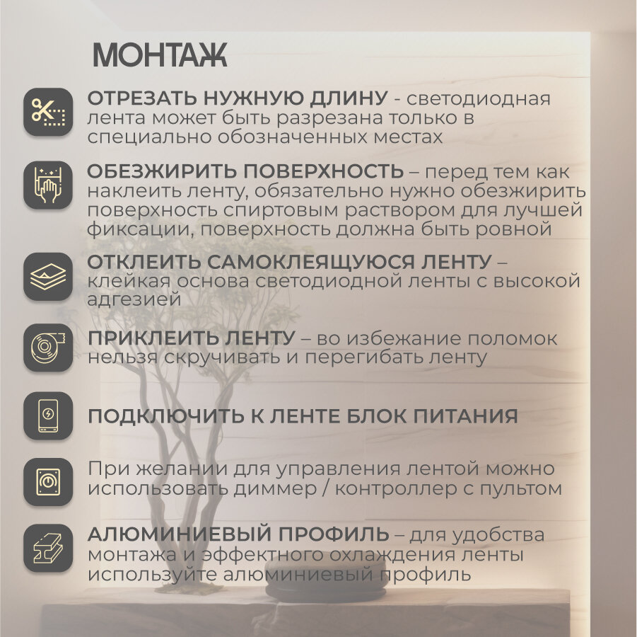 | Особенности | возможность подключения диммера / самоклеящаяся основа |