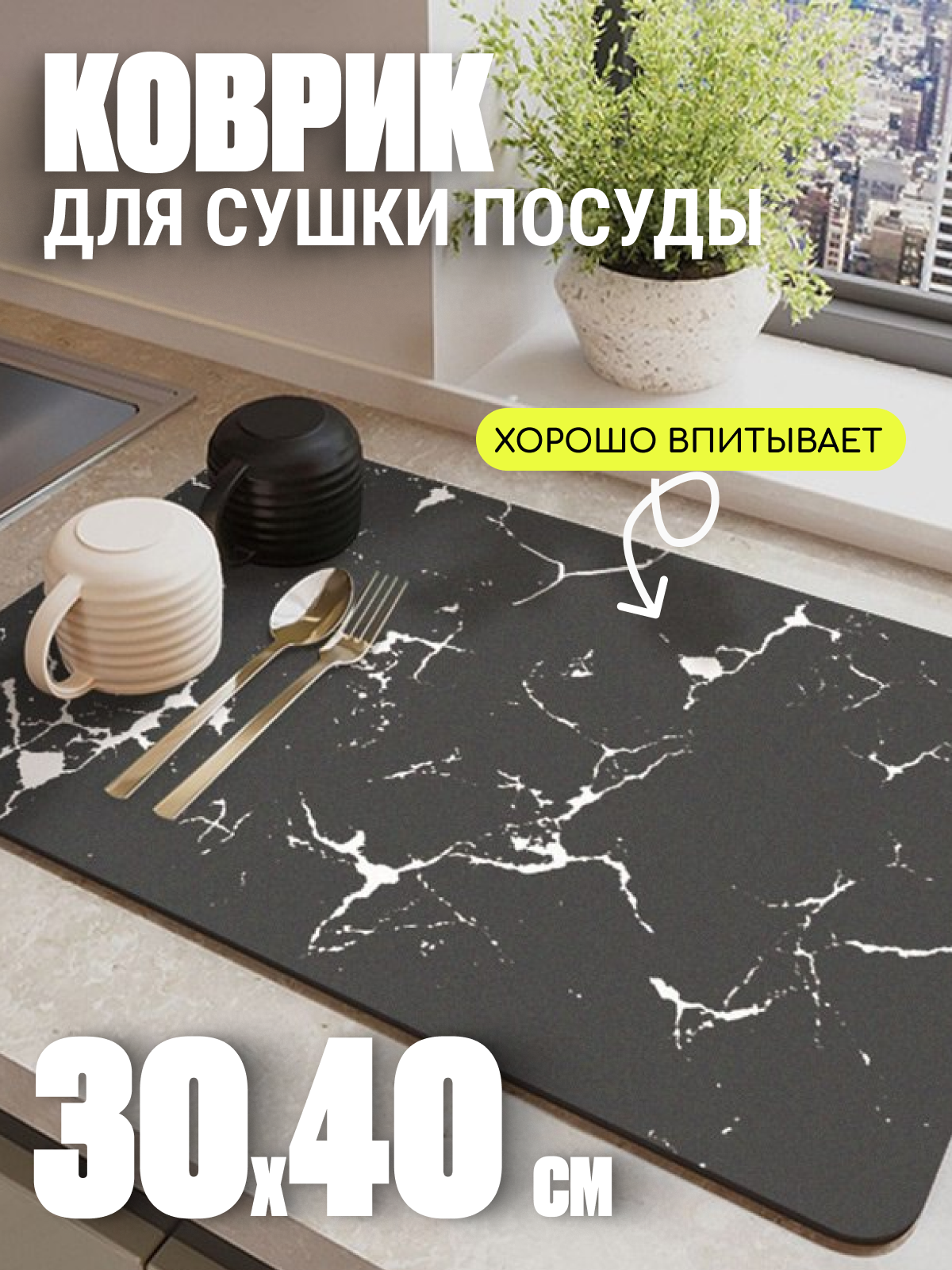 Коврик для сушки посуды Edilium Black Marble, черный, 30 x 40 см интересное: