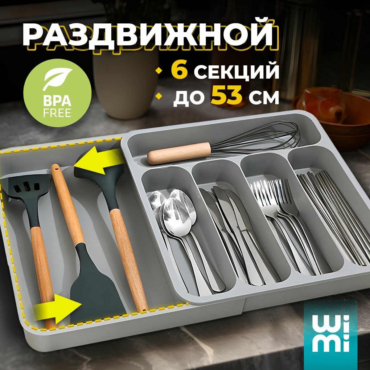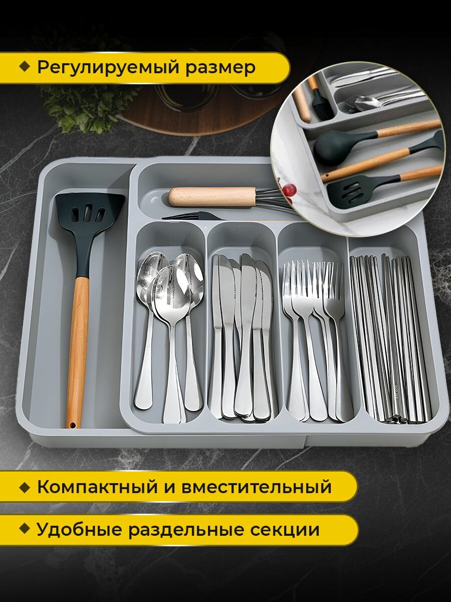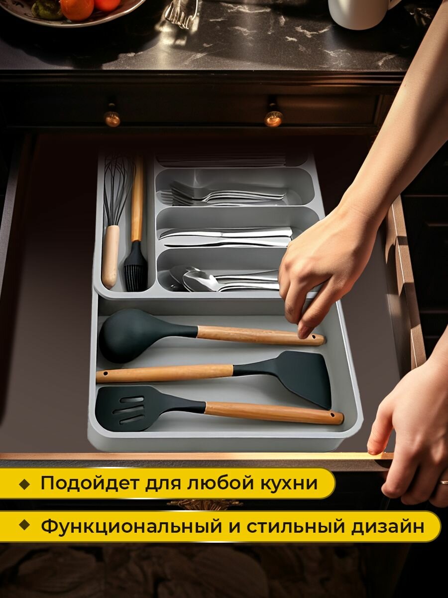 Лоток для столовых приборов в ящик WiMi, раздвижной интересное:
