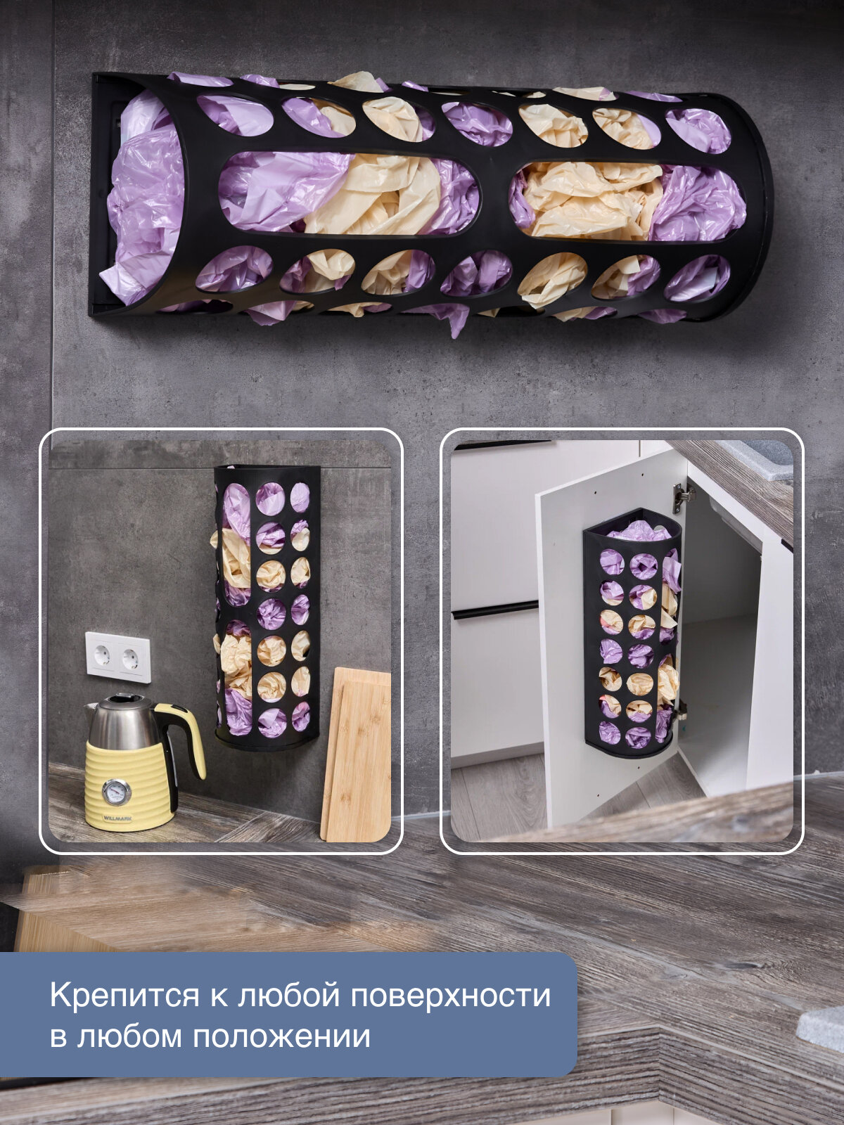 | Комплектация | Корзина для пакетов - 1 шт; Самоклеящиеся крючки - 2 шт |