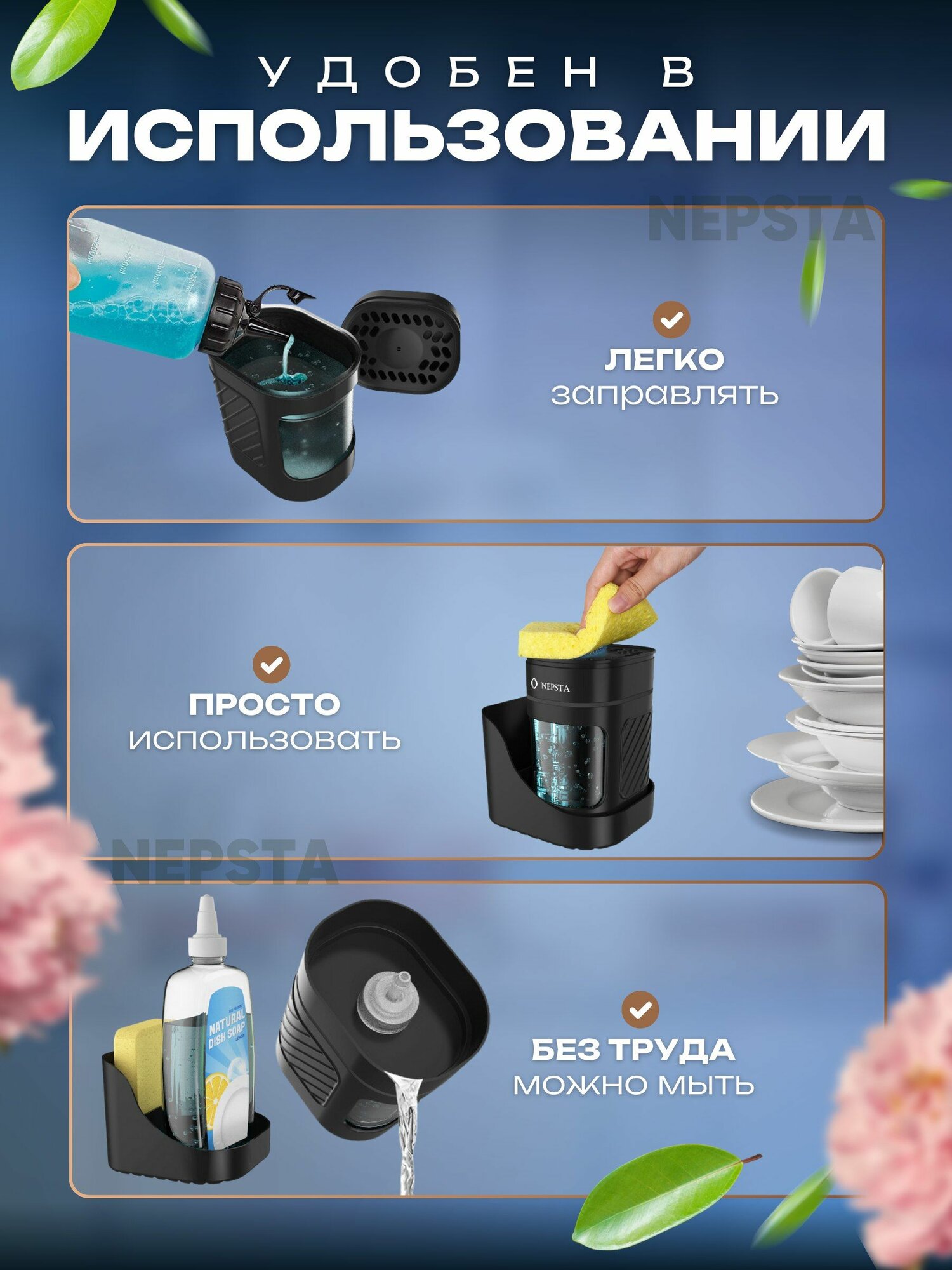 СохранитьДиспенсер кухонный для моющего средства с органайзером на поддоне черный/дозатор для моющего средства/диспенсер на кухонную раковину интересное: