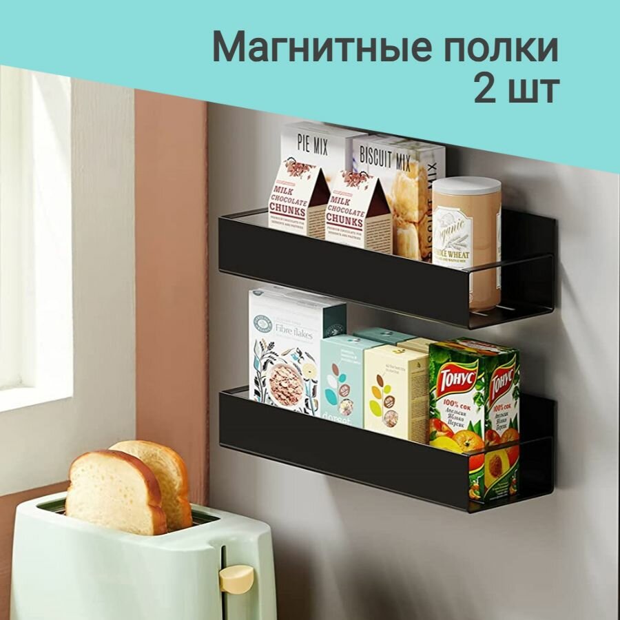 Магнитная полка на холодильник черная / Набор 2 шт. полки на магнитах интересное: