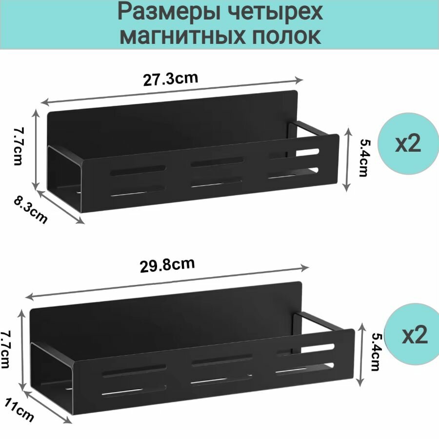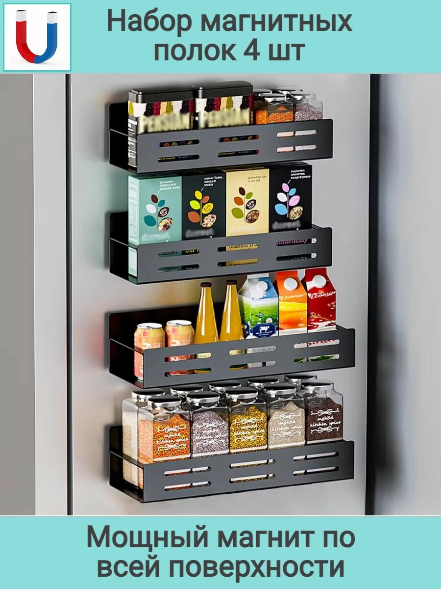 Магнитная полка на холодильник черная / Набор 4 шт. полки на магнитах интересное: