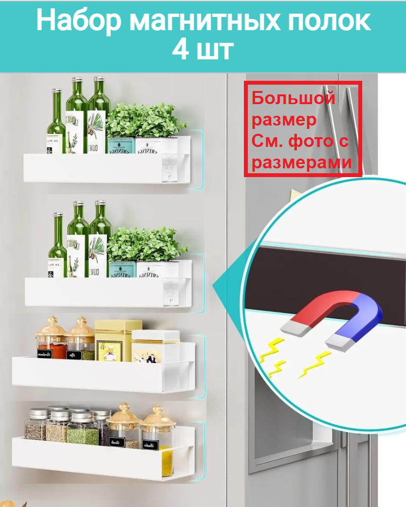 Большой размер / Магнитная полка на холодильник белая / Набор 4 шт