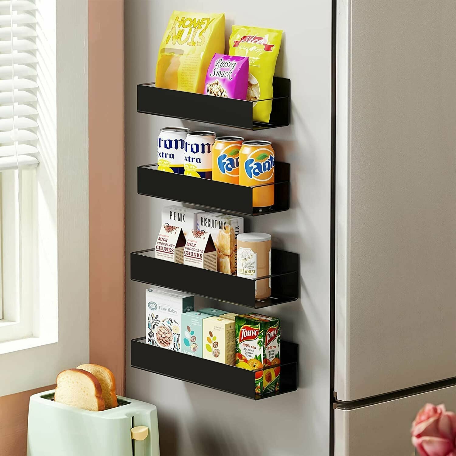 Магнитная полка на холодильник черная / Набор 4 шт. полки на магнитах