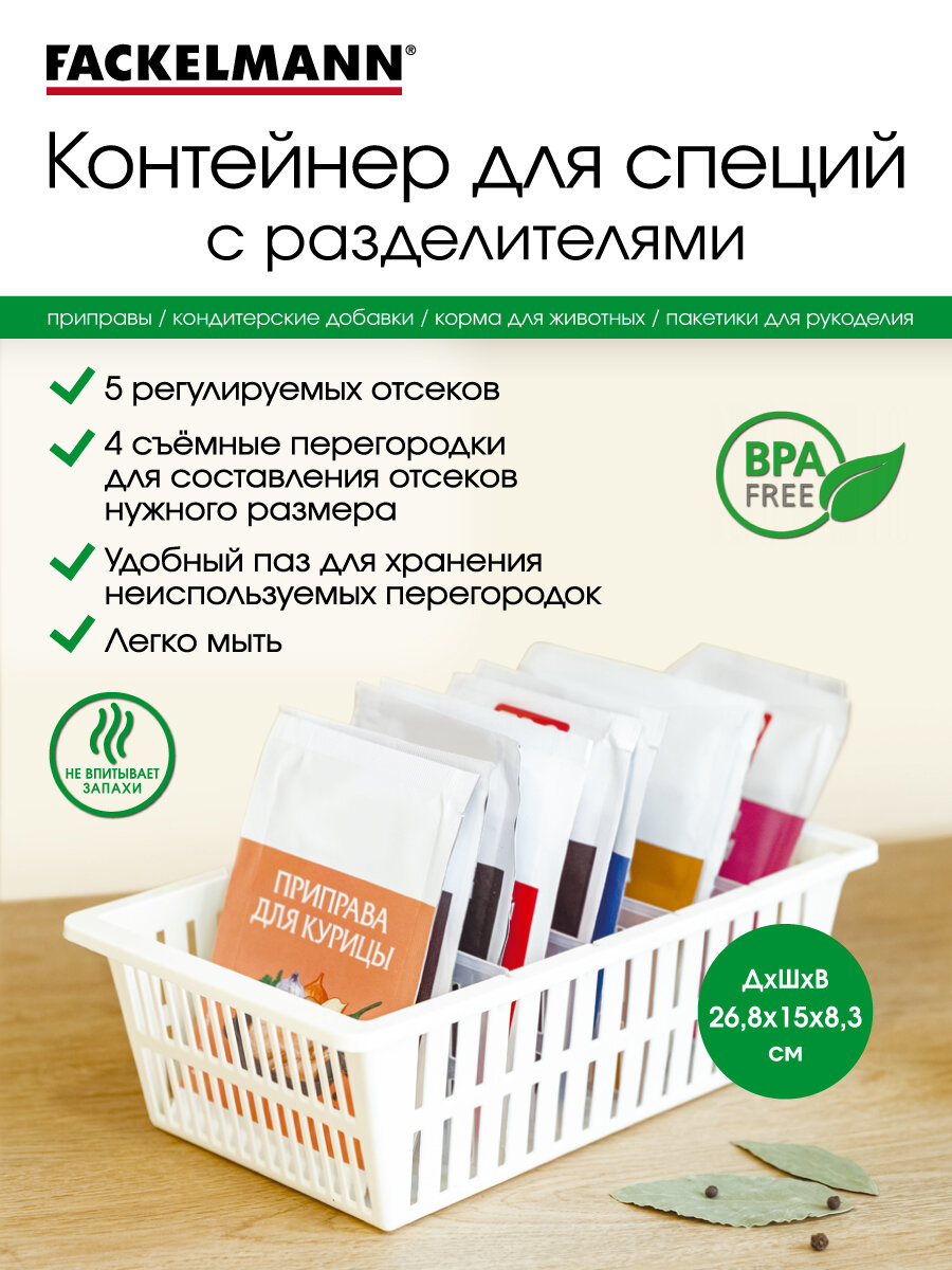 Контейнер для специй с разделителями FACKELMANN 27*15*8 см, Органайзер для специй интересное: