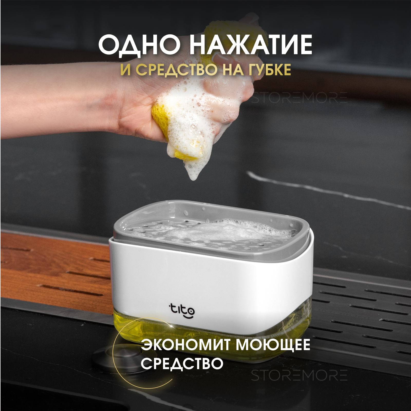 Диспенсер кухонный для моющего средства с губкой, белый интересное: