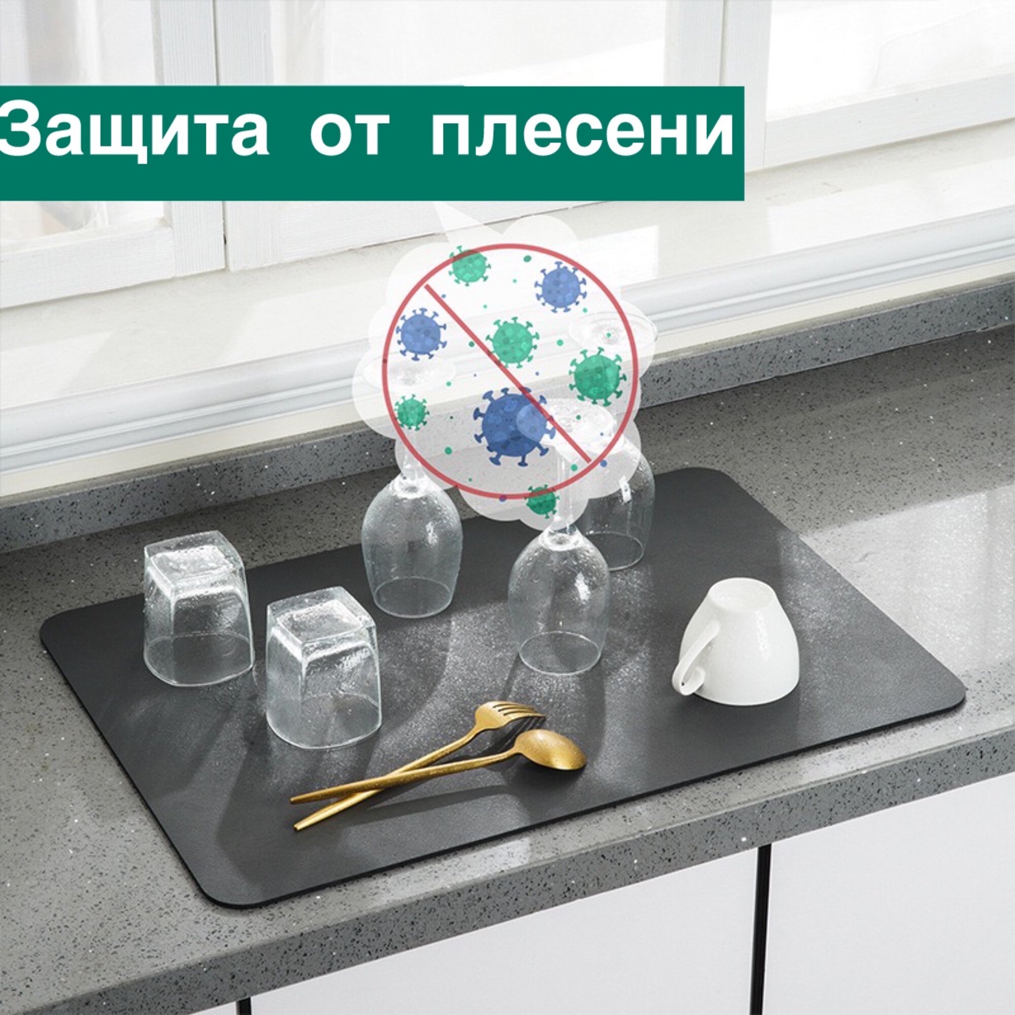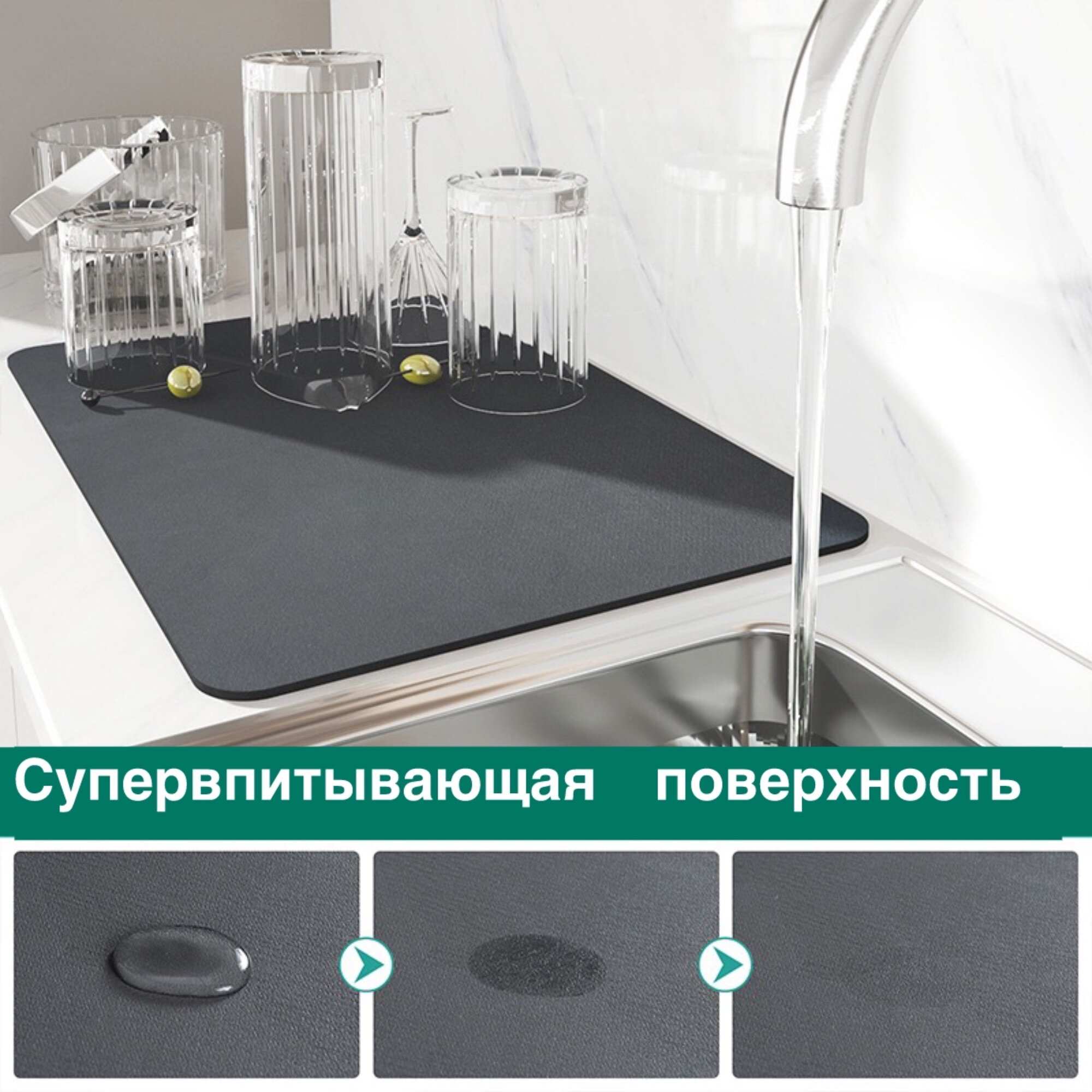 Нано коврик для сушки посуды. Сушилка для посуды 40*50. Экологичный, антибактериальный. Практичный. Впитывающий коврик для сушки посуды.