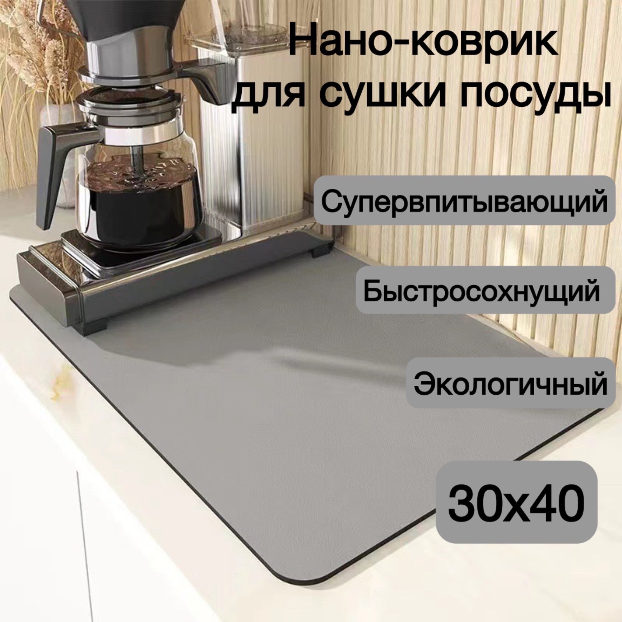 Нано коврик для посуды. Для кухни. Сушилка для посуды. Впитывающий, быстросохнущий, универсальный коврик. Серый