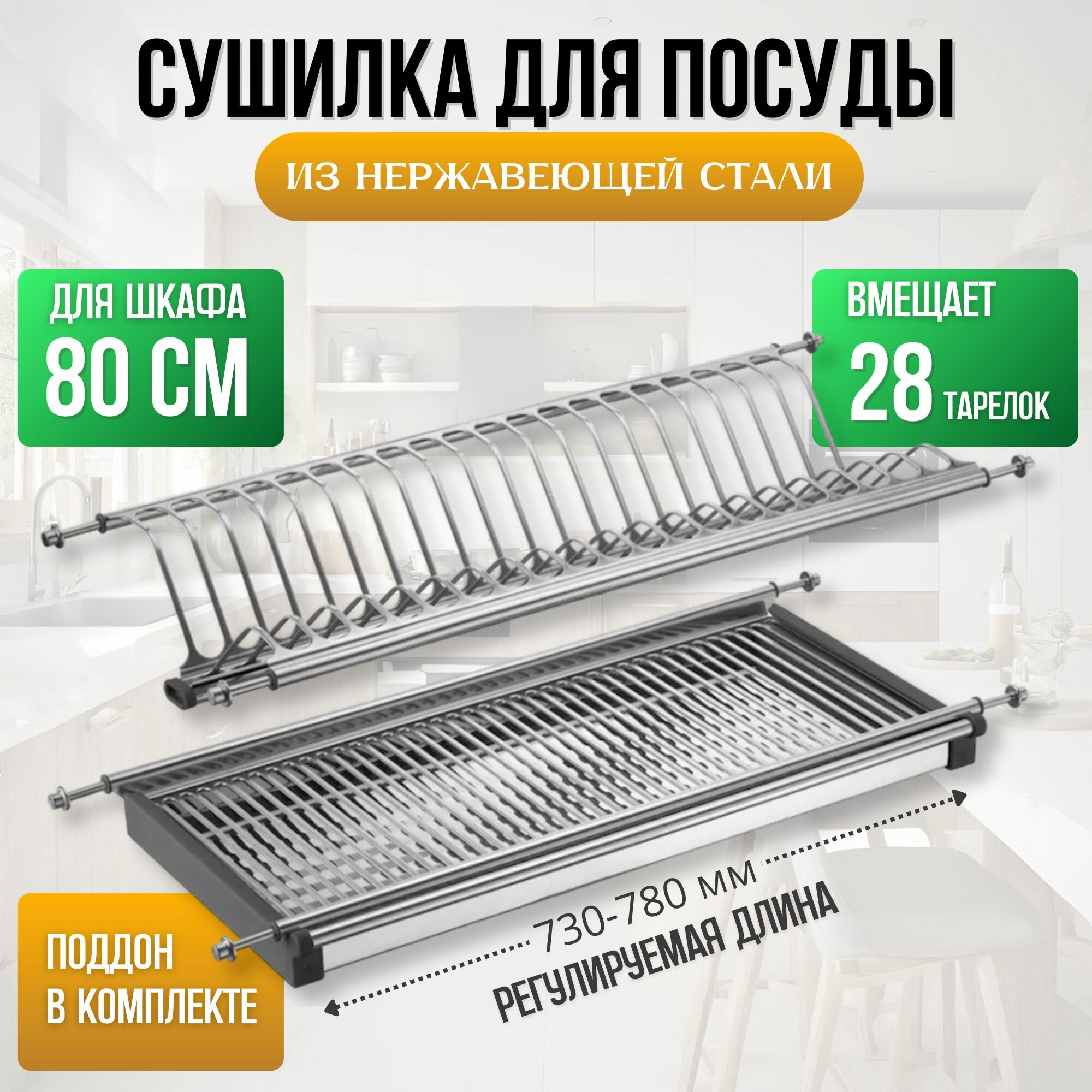 Сушилка для посуды в шкаф 80 см нержавеющая сталь (комплект) интересное: