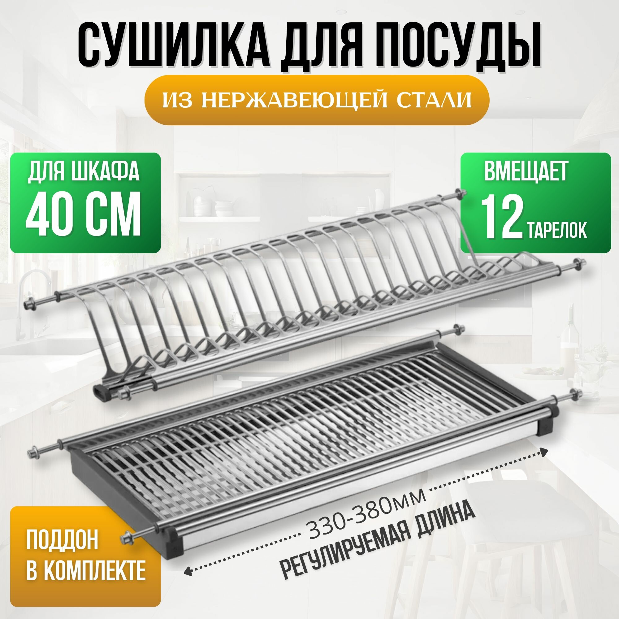 Сушилка для посуды в шкаф 40 см /400 мм нержавеющая сталь (комплект) интересное: