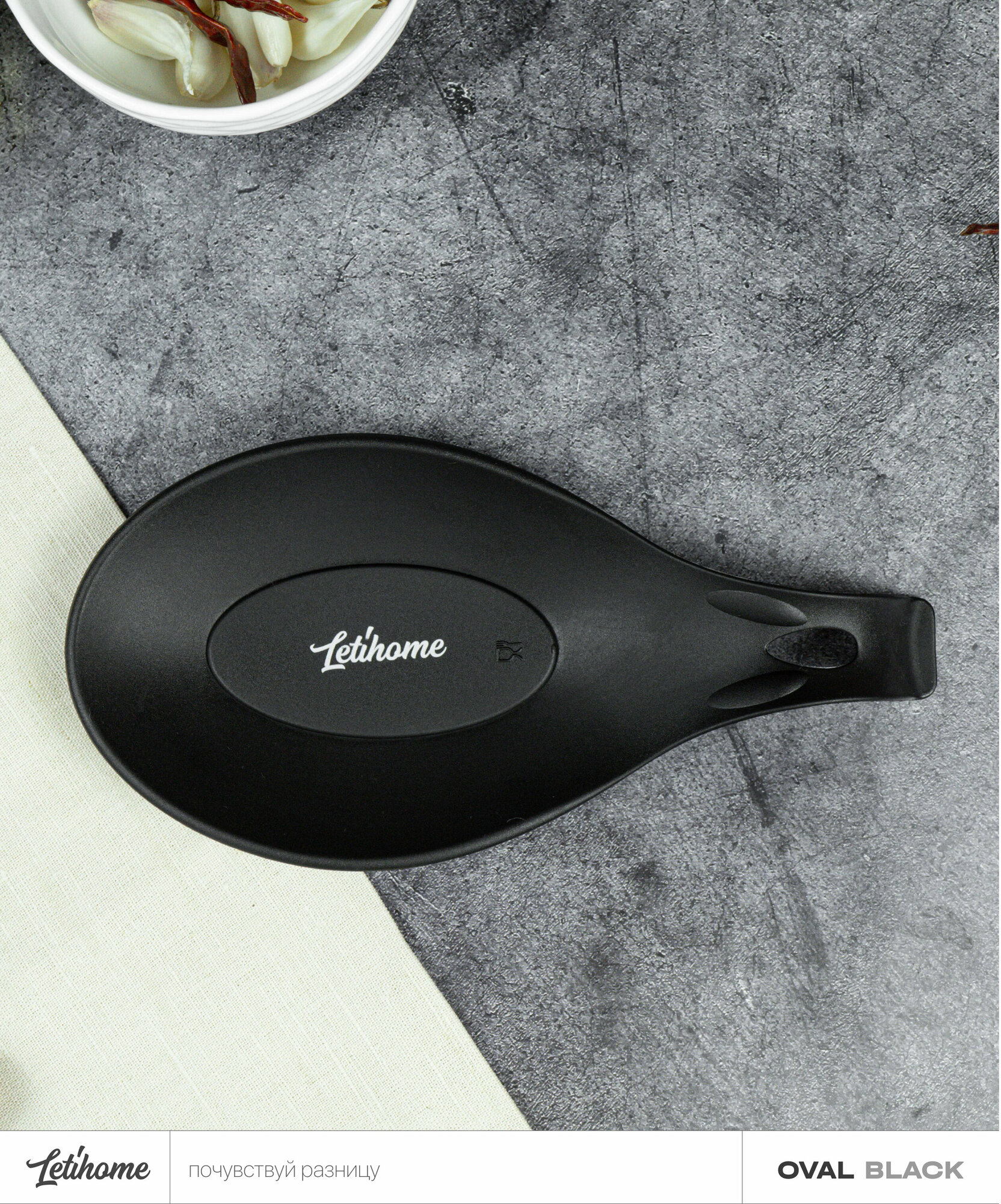 Силиконовая подставка для ложки, половника Letihome OVAL BLACK - 24 cm