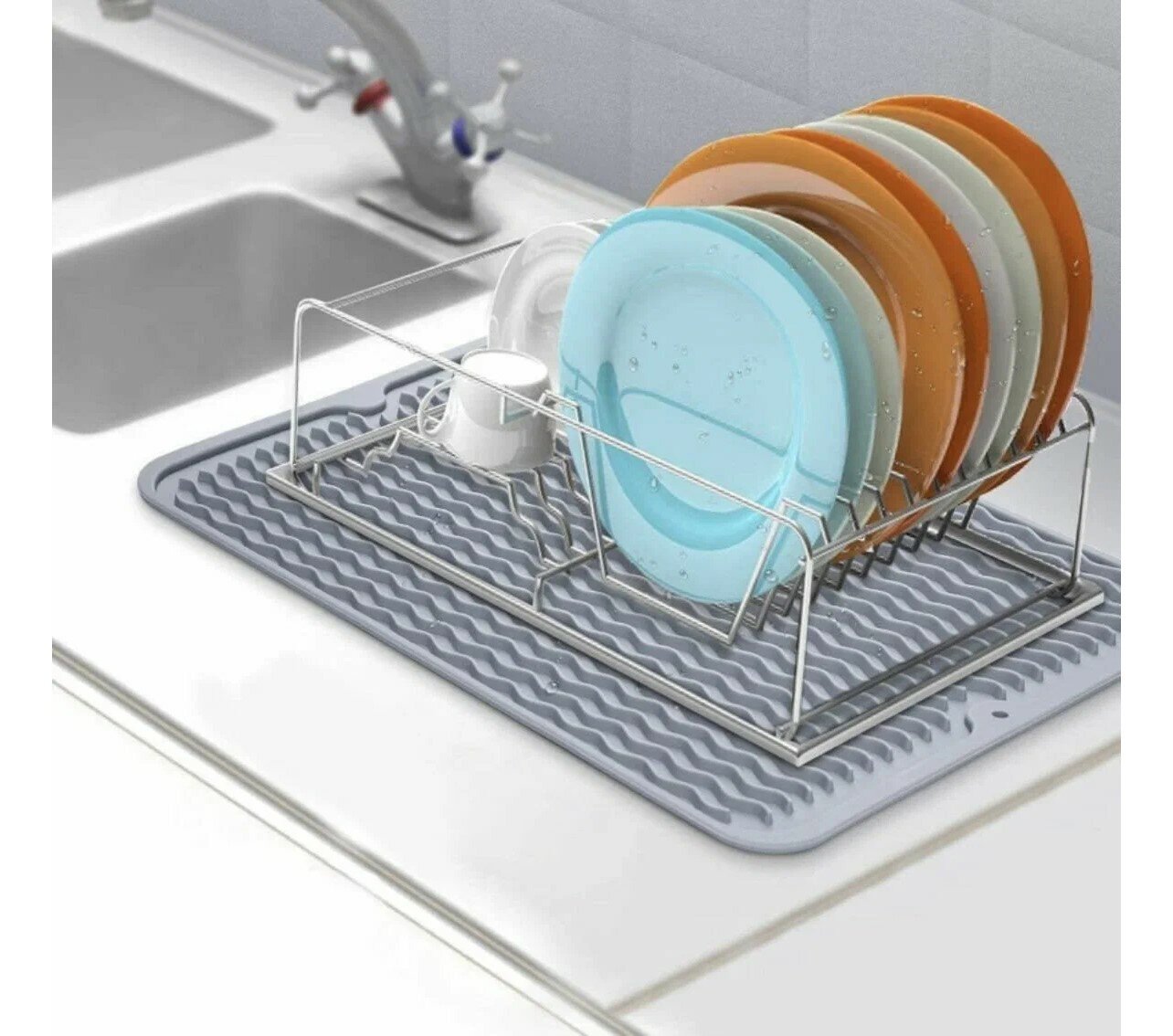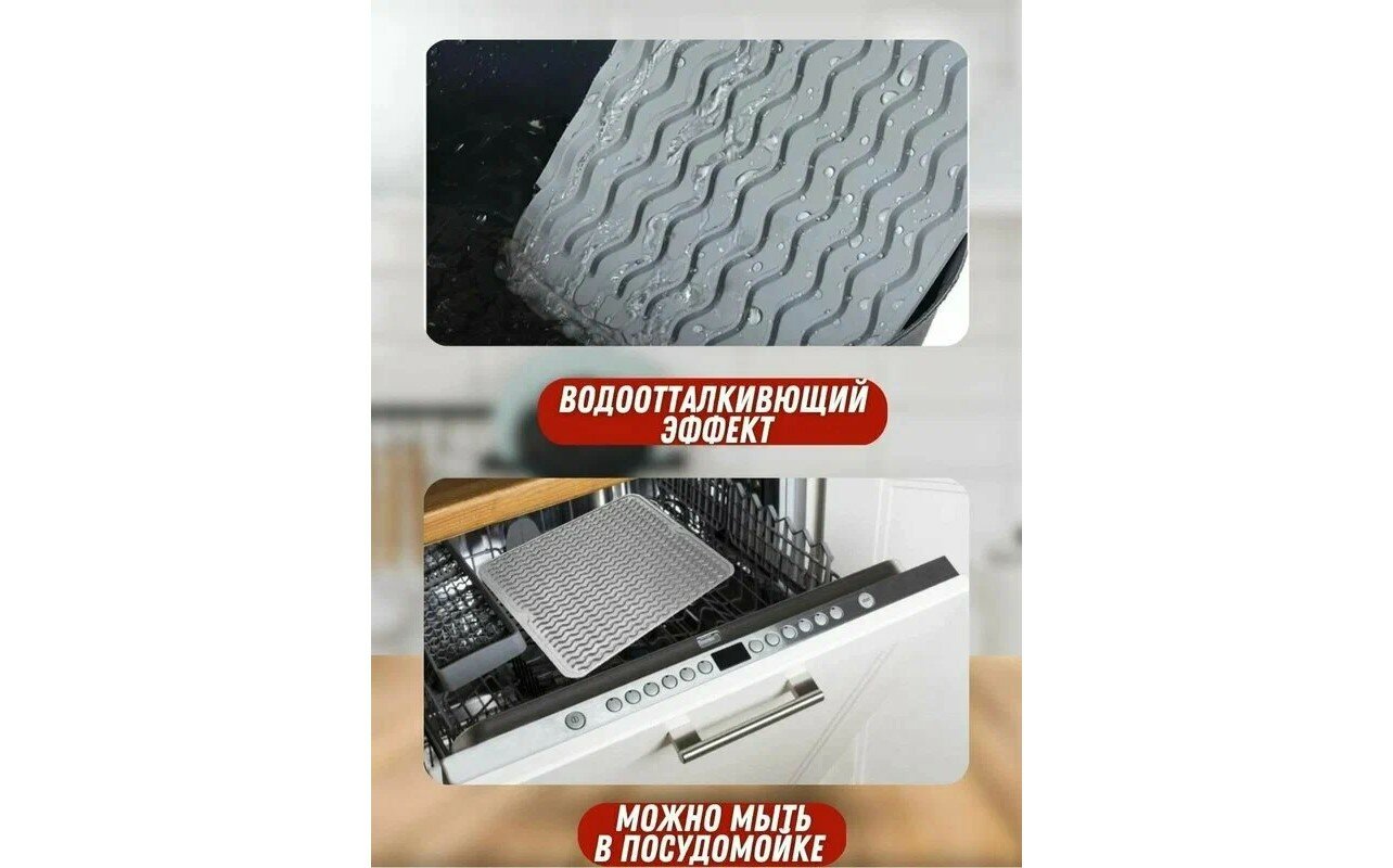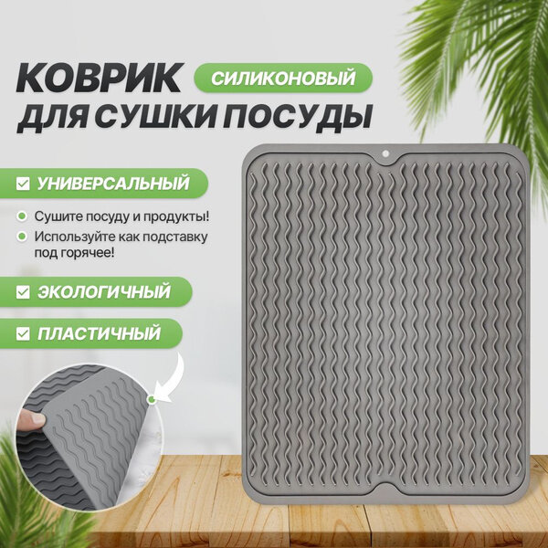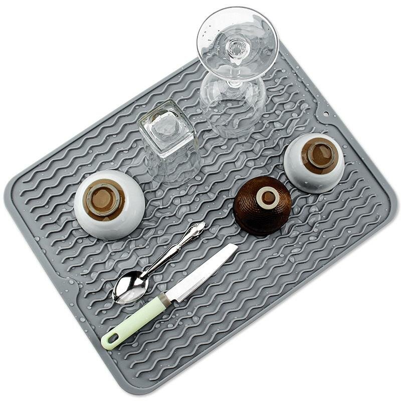 Силиконовый коврик для сушки посуды и продуктов, 40х30 см светло-серый интересное: