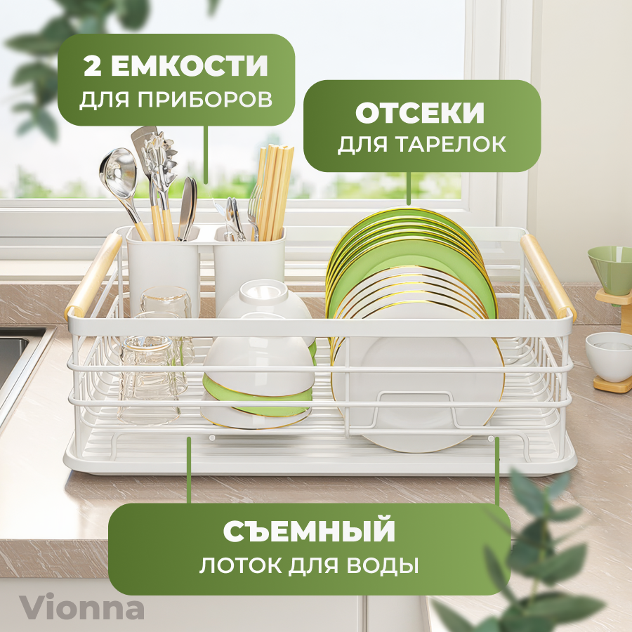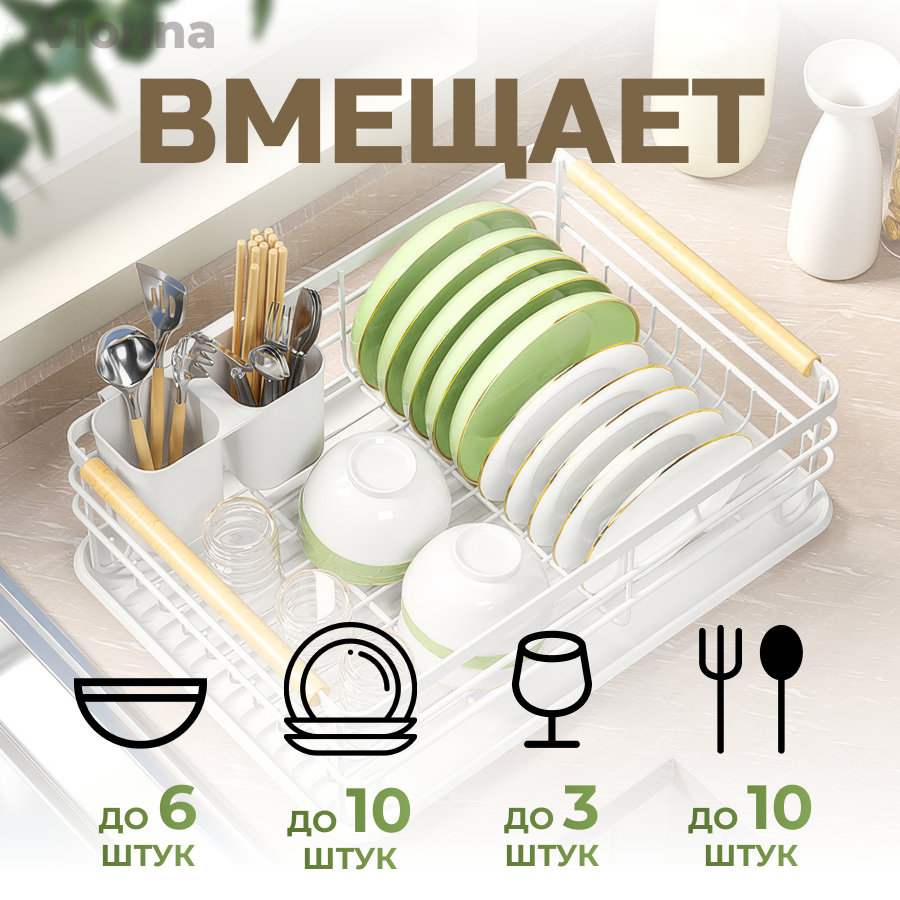 Сушилка для посуды настольная с поддоном и отводом воды, белая интересное: