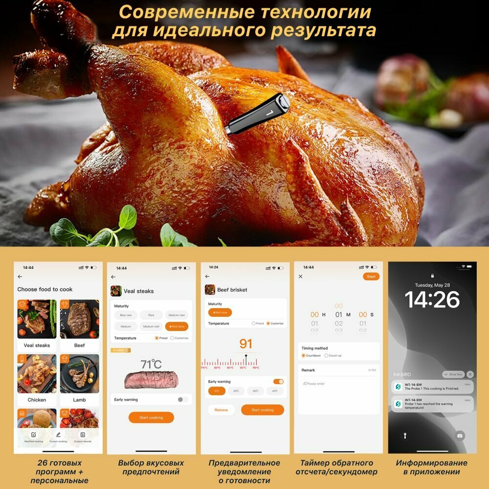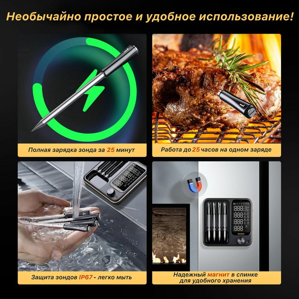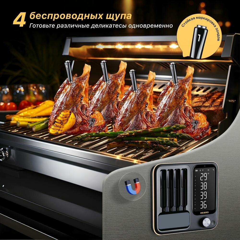Кулинарный термометр INKBIRD INT-14BW, 4 беспроводных щупа, WiFi и Bluetooth интересное: