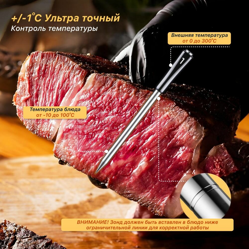 Кулинарный термометр электронный со щупом из нержавеющей стали, термометр для еды, мяса, вина, провод 1 метр / таймер кухонный