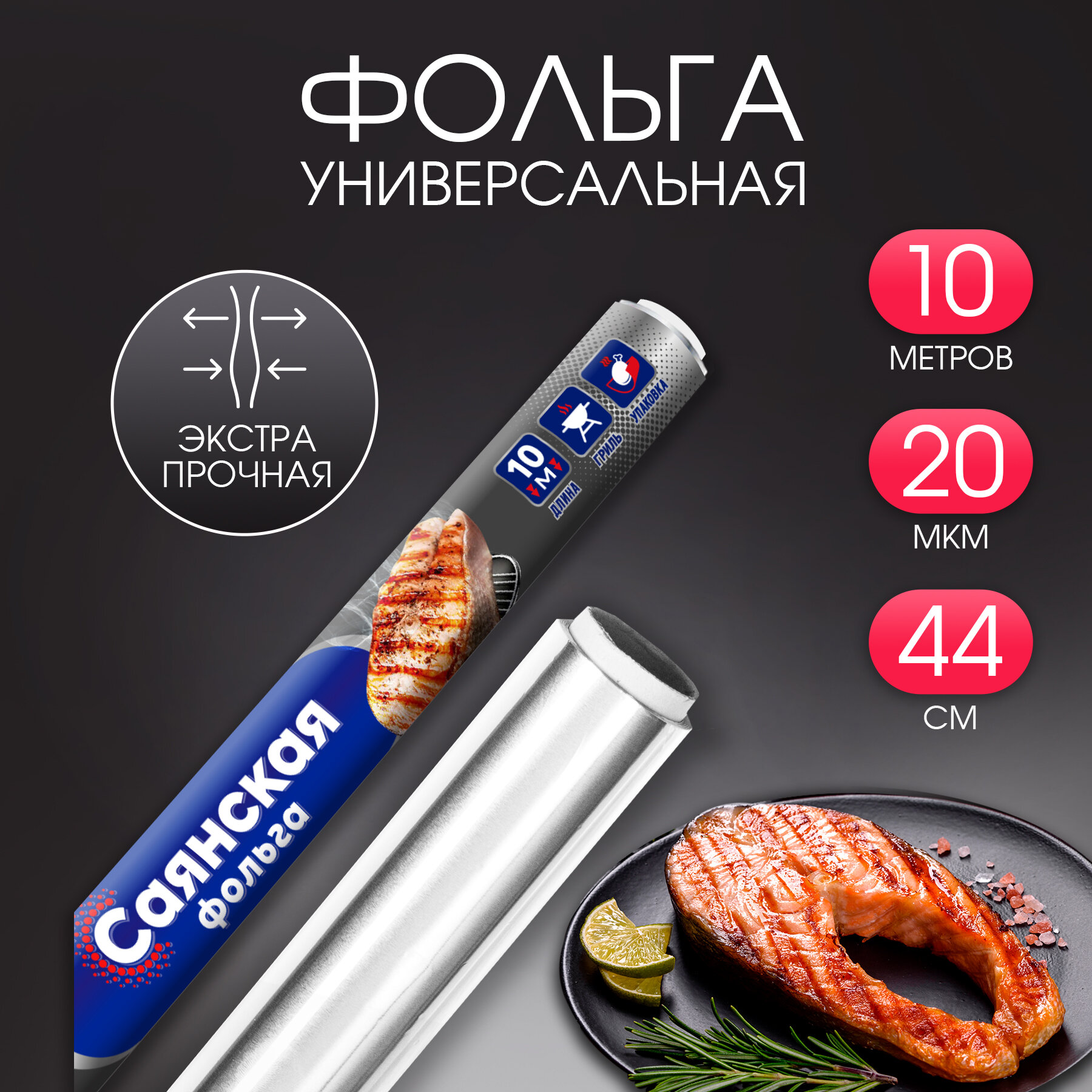 Фольга для выпечки Саянская фольга гриль, 7 м х 44 см, 7, 20 мкм х 44 см, 3 л, 1 шт.