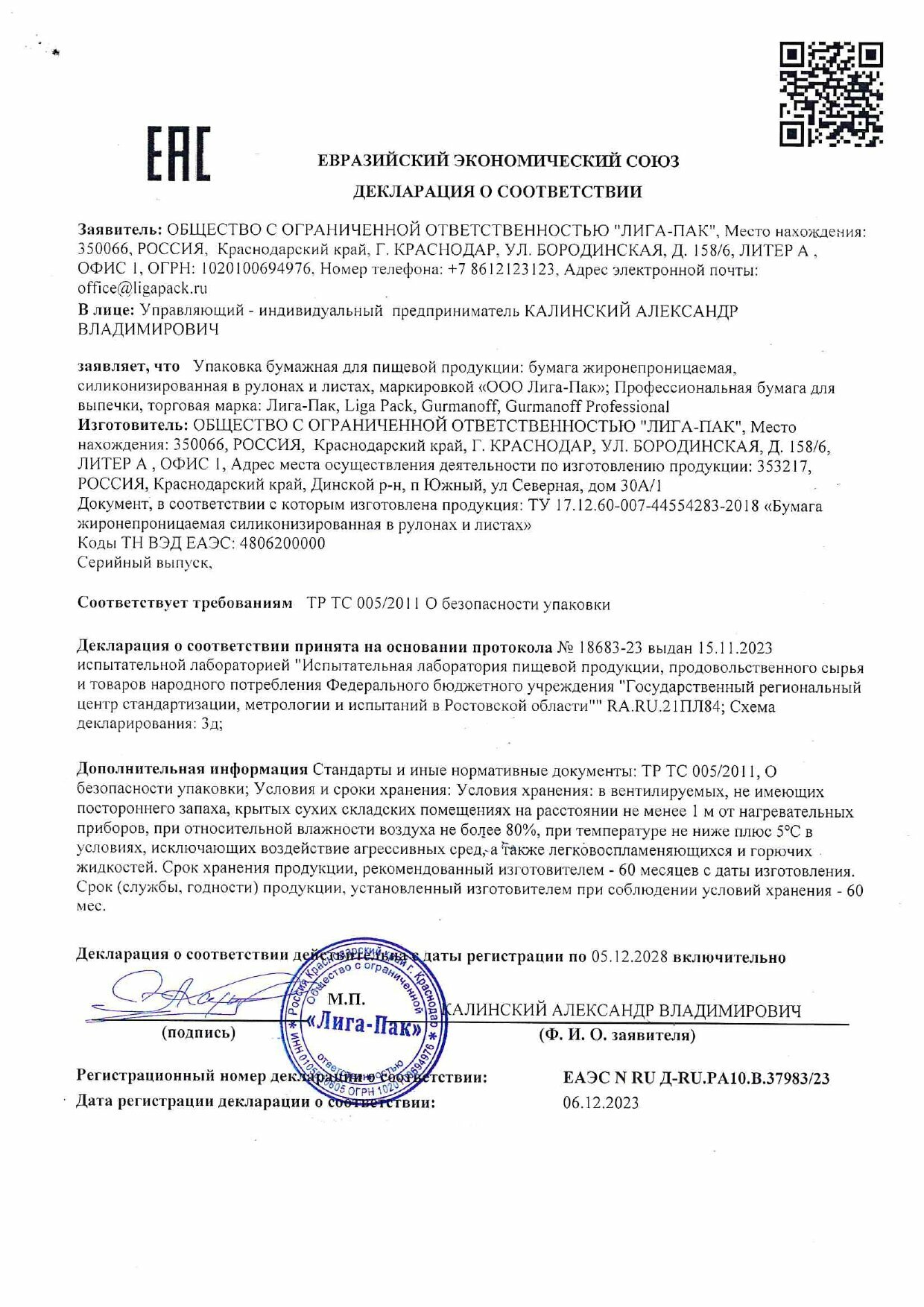 | Комплектация | 1 упаковка бумаги силиконизированной |