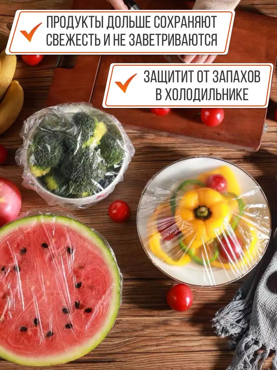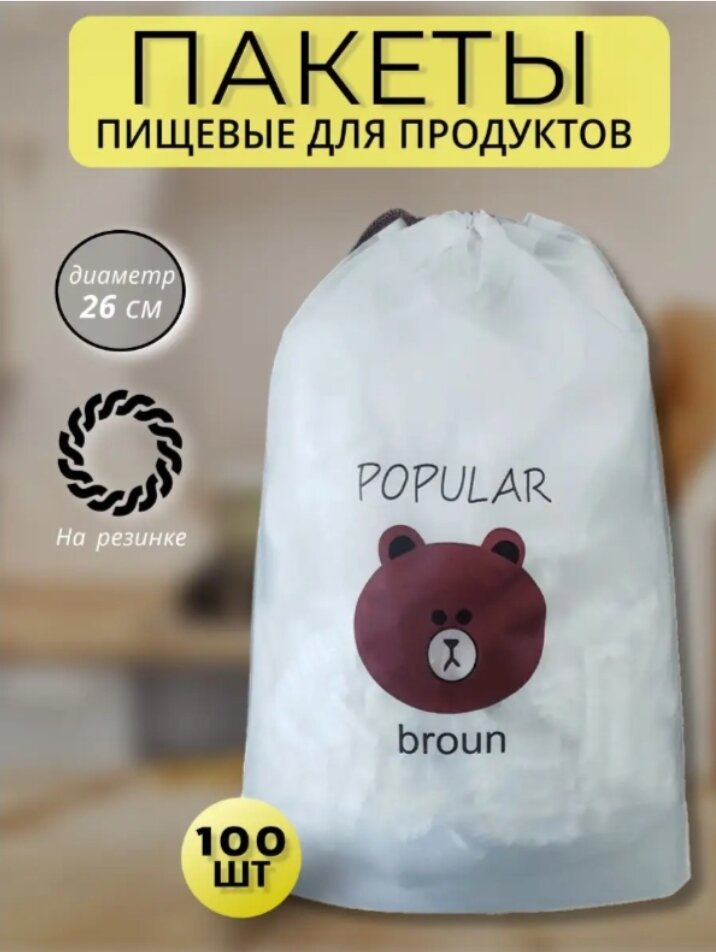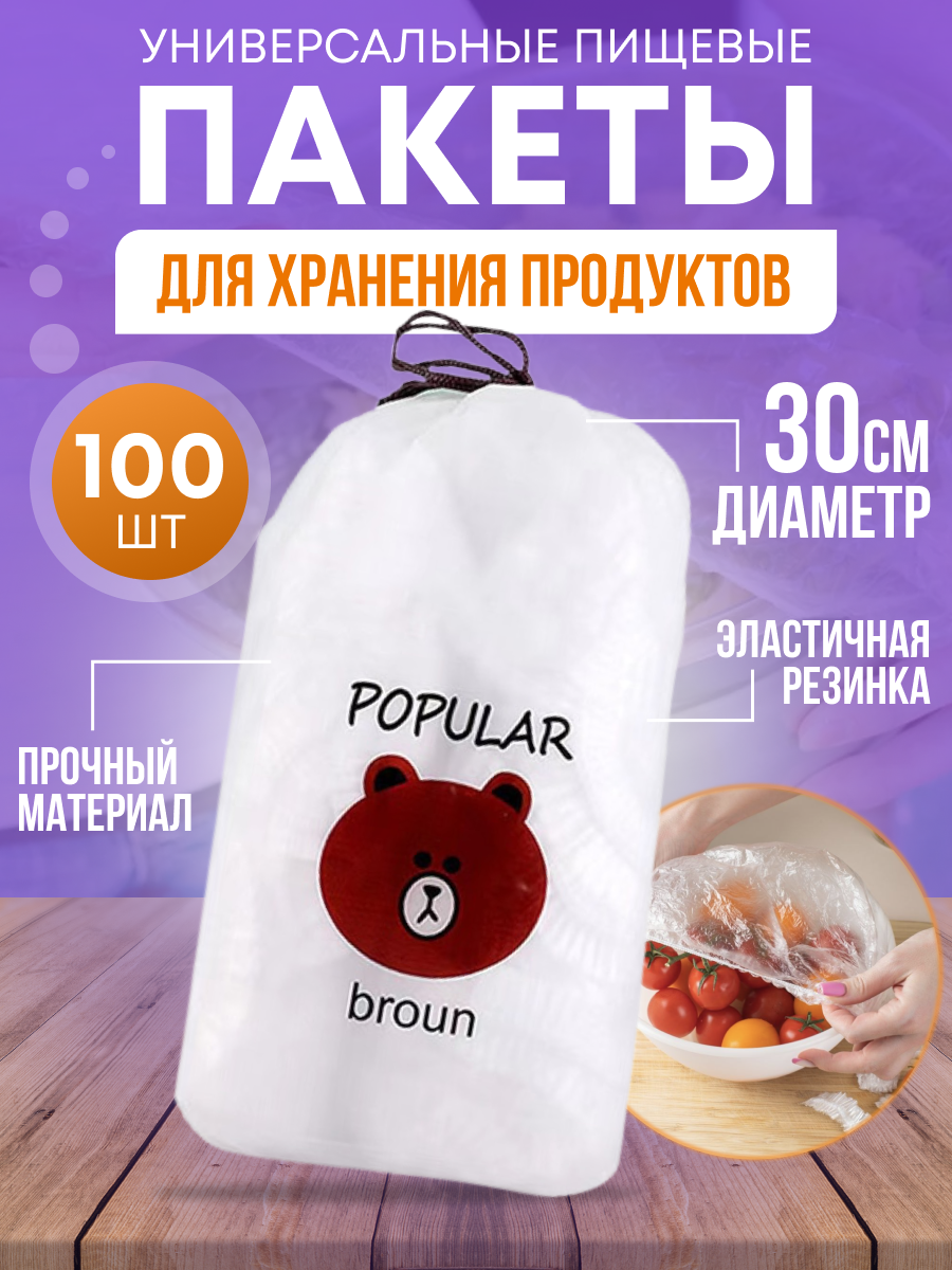 Крышка-чехол. Полиэтиленовые пищевые пакеты для продуктов на резинке. Шапочки для посуды. 100 шт. интересное: