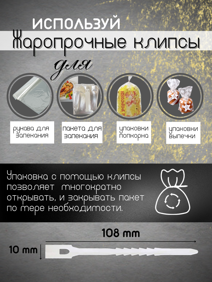 Жаропрочные клипсы для пакетов и рукава для запекания 100шт. интересное: