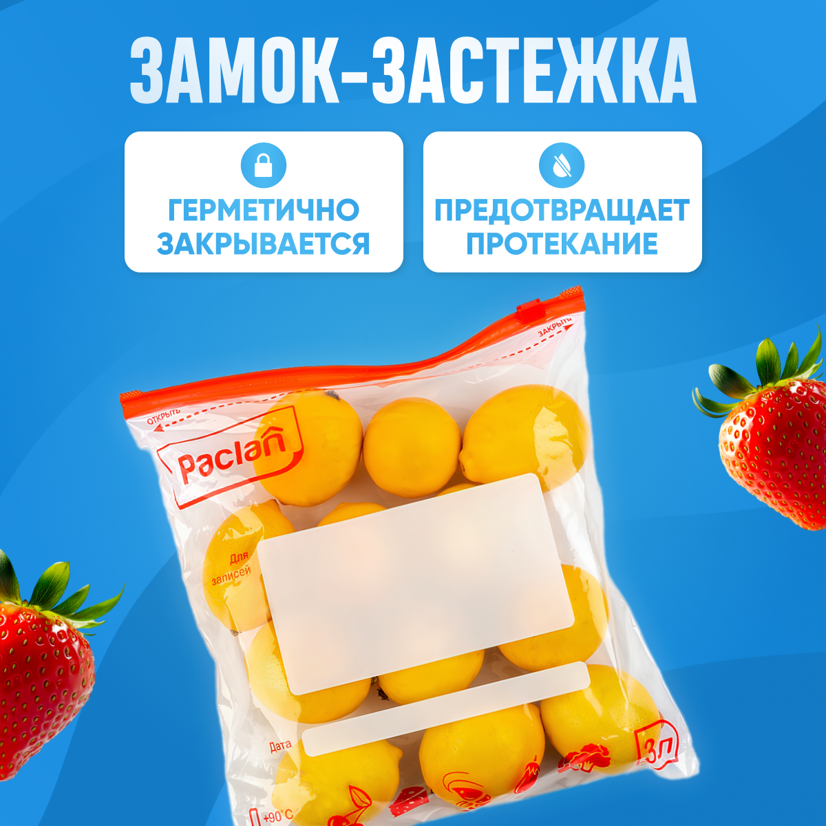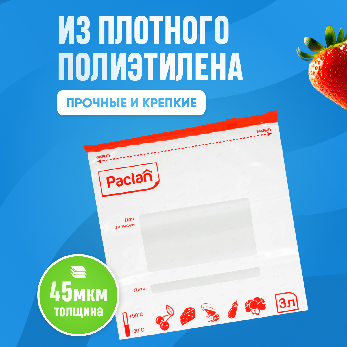 Зип пакеты Paclan для хранения и замораживания продуктов с замком застежкой 1 л 15 шт. 3 упаковки