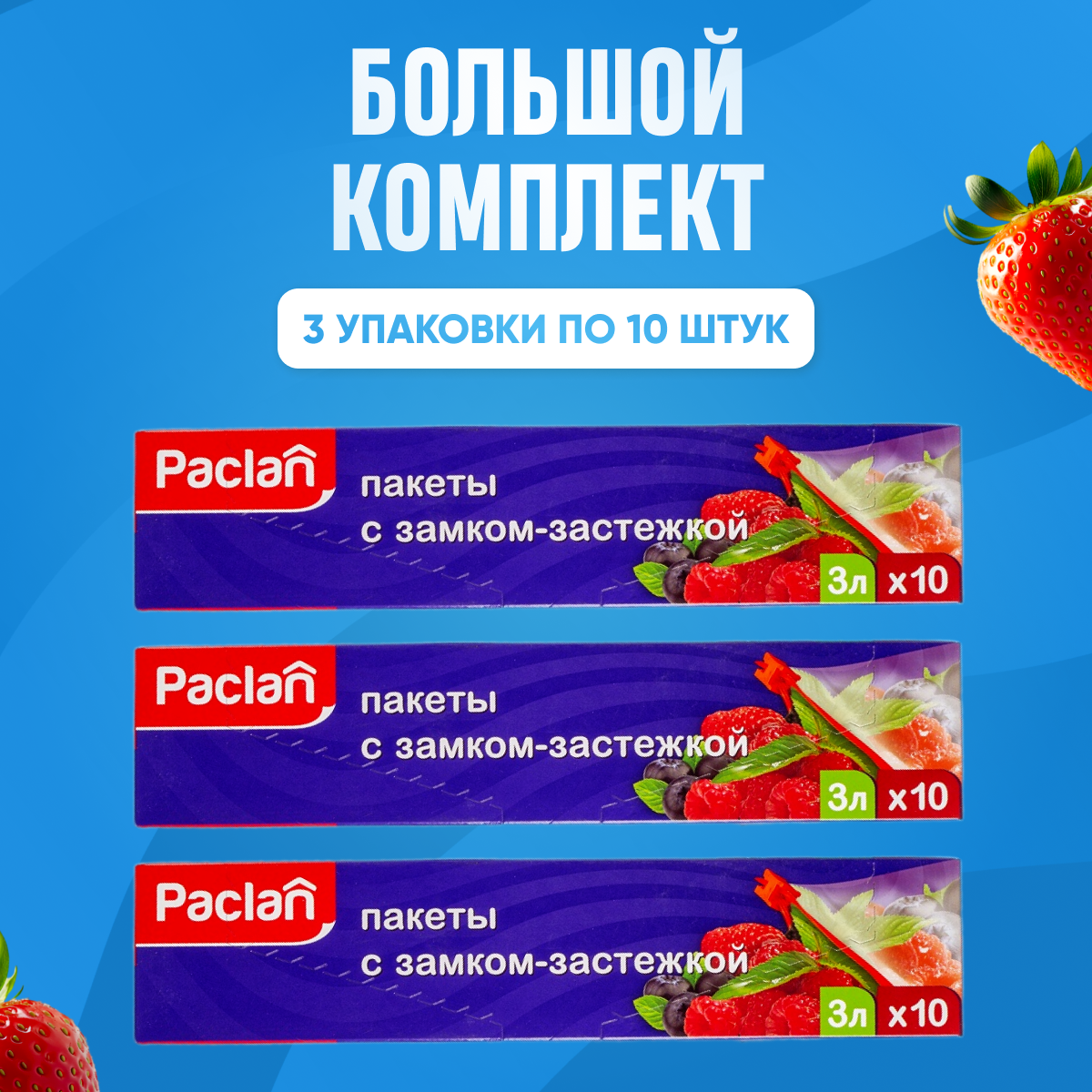 Комплект Paclan Пакеты с замком-застежкой 27 х 28 см. 3 л. 10 шт/упак. х 2 упак.