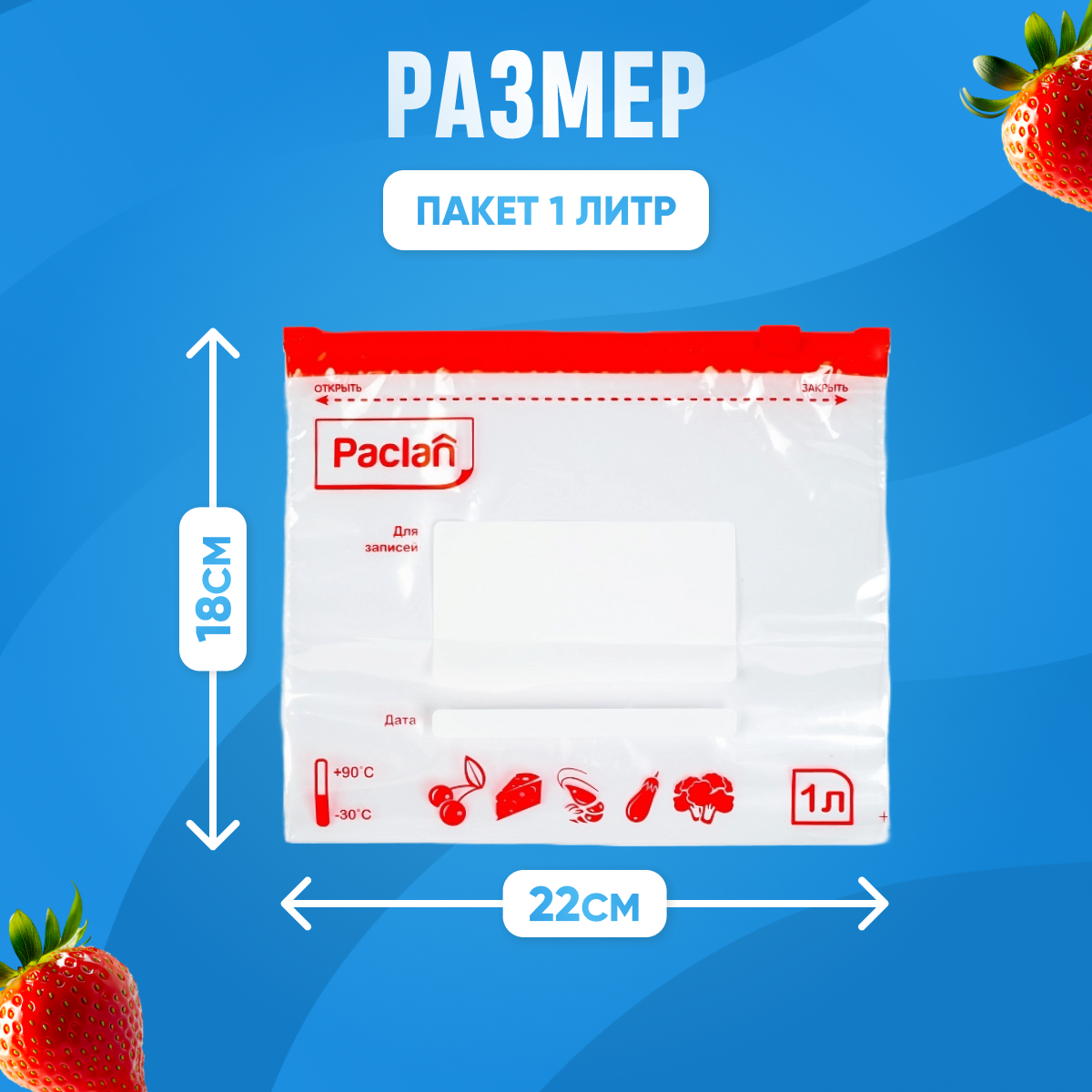 Зип пакеты Paclan для хранения и замораживания продуктов с замком застежкой 1 л 15 шт. 3 упаковки