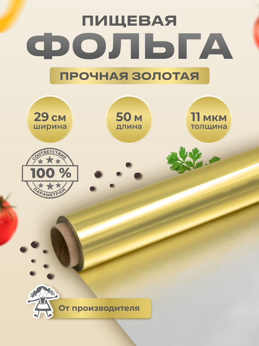 Фольга пищевая для запекания "Домовушка", 29см х 50м, 11мкм, золотистая интересное:
